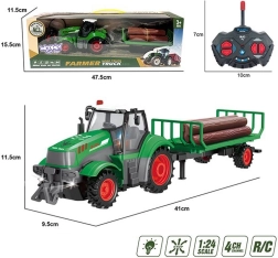 - tractor RC con batería, remolque con 5 troncos, cargador USB, mando a distancia