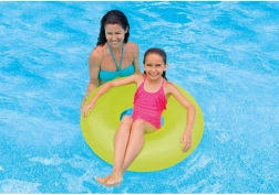 El estiloso flotador neón es una gran elección para jugar en el agua y para descansar tranquilamente sobre la superficie. Gracias a su diámetro de 91 cm ofrece un soporte cómodo y seguridad, además de inflarse y guardarse con facilidad.