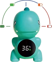 El adorable termómetro con forma de dinosaurio de WOOPIE facilita el control de la temperatura segura durante el baño y en la habitación infantil. Gracias a su pantalla digital conocerás el valor rápidamente, mientras que la señalización por colores ayuda a reconocer la temperatura ideal del agua para niños. Su diseño compacto y seguro, hecho con materiales agradables, es perfecto para el uso diario y su aspecto divertido encantará a niños y padres.