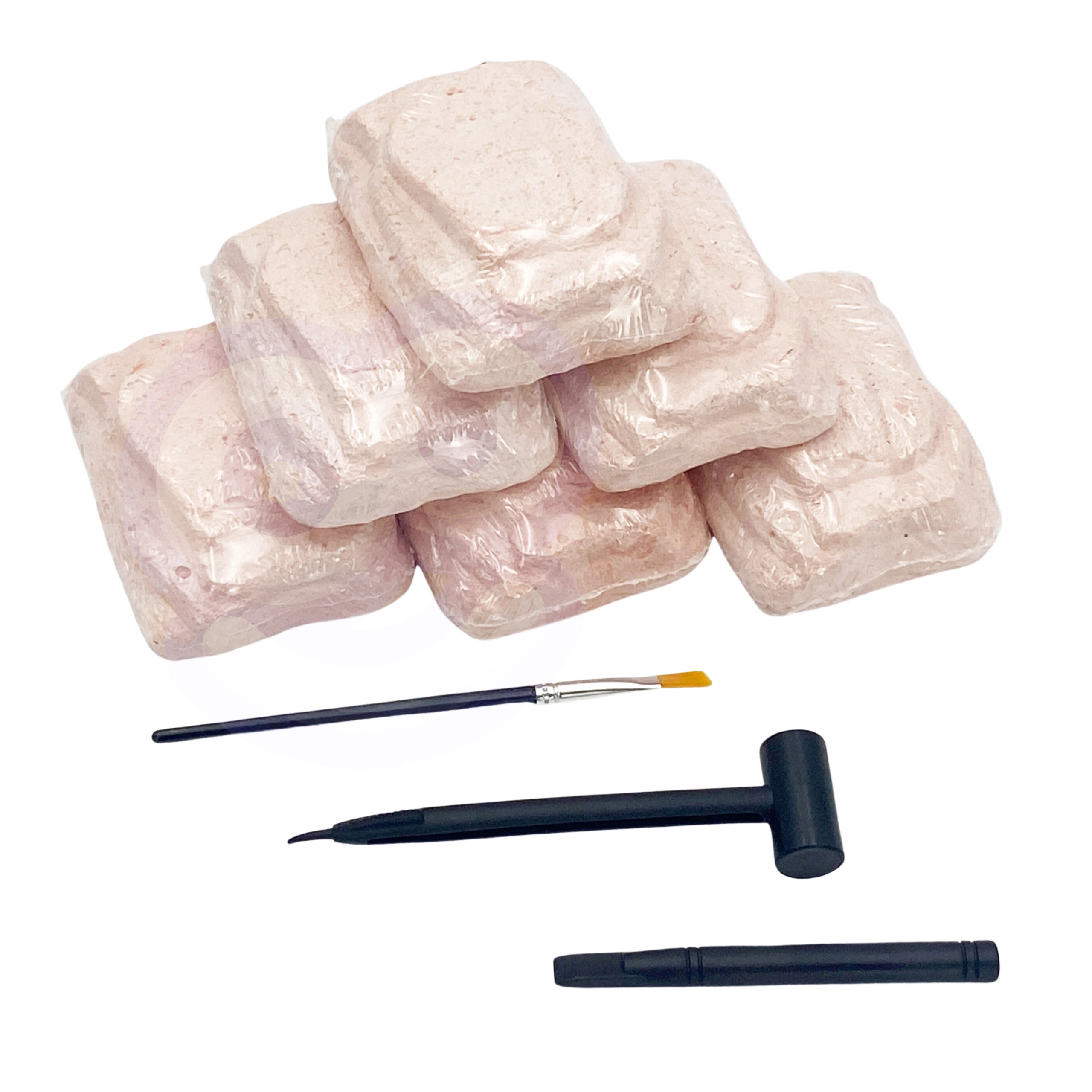 - fósiles, martillito, cincel, cepillo