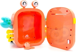 El cangrejo emite efectos de sonido y fomenta la autonomía, la lógica y la creatividad. Está diseñado para niños a partir de 3 años y se fabrica con especial atención a la seguridad y a la facilidad de uso. Si es necesario, el juguete se puede restablecer y configurar una nueva contraseña.