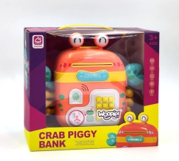 Este colorido cangrejo es más que una hucha: es una caja fuerte interactiva, hucha y mochila infantil en uno. Los niños pueden guardar monedas, billetes y pequeños tesoros, establecer su propia contraseña y disfrutar de elementos realistas como el teclado de botones, el lector de huellas simulado y el botón giratorio para abrir.