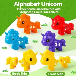 El set de unicornios de colores está diseñado para proporcionar horas de diversión interminable y educativa. Con estos juguetes, los niños pueden aprender el abecedario uniendo las piezas marcadas con letras.