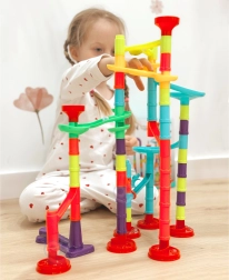 Ensambla recorridos originales, observa las canicas a toda velocidad y descubre los principios de la gravedad y la rapidez. El set, muy versátil, permite construir según las instrucciones ilustradas o crear tus propias estructuras con rampas, puentes, espirales y embudos. Cada recorrido es distinto y anima a los niños a planificar y experimentar.