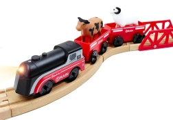 La locomotora funciona con 1× AAA y enciende una luz durante la marcha. Experiencia realista sin configuraciones complicadas.