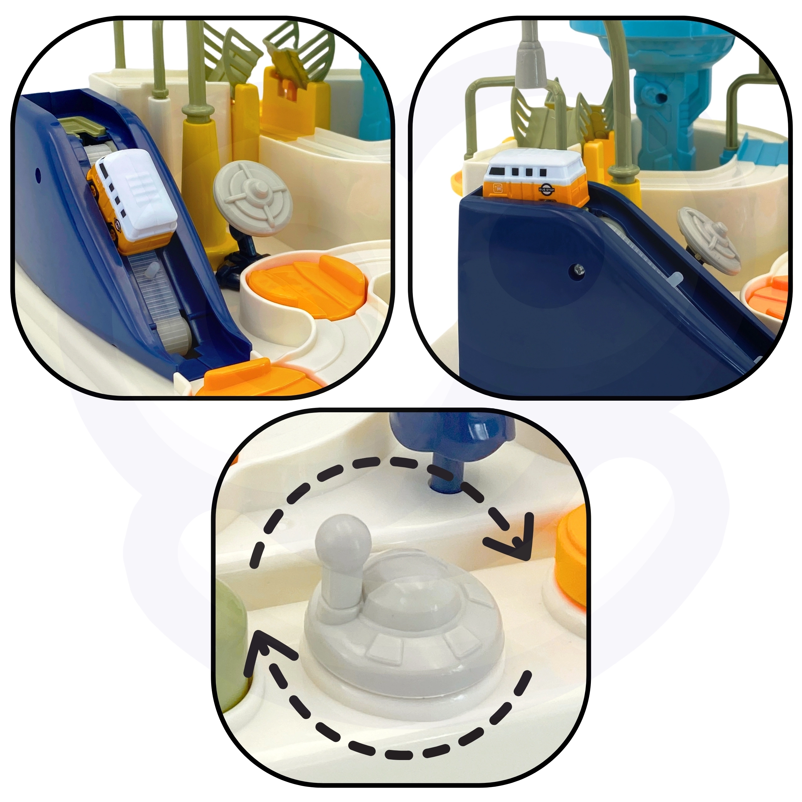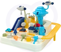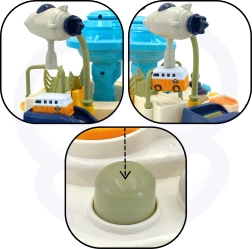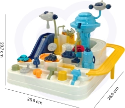La pista interactiva con estilo de base espacial convierte cada día en una misión emocionante. Los niños activan manualmente los mecanismos, cambian los desvíos y, con el lanzador, envían los vehículos a la órbita. Gracias a su construcción robusta y bordes seguros, el juguete es ideal para el juego diario y el desarrollo de habilidades.