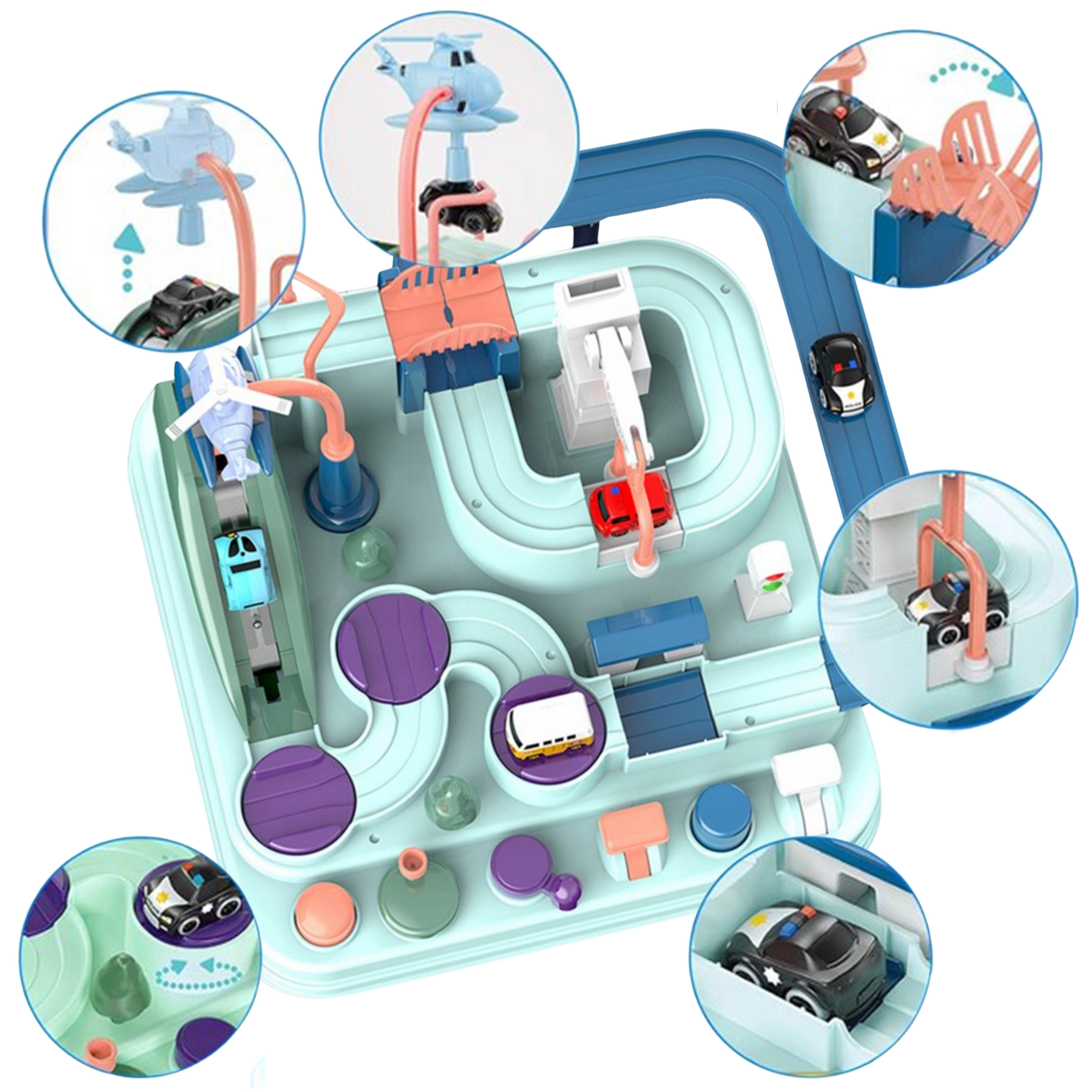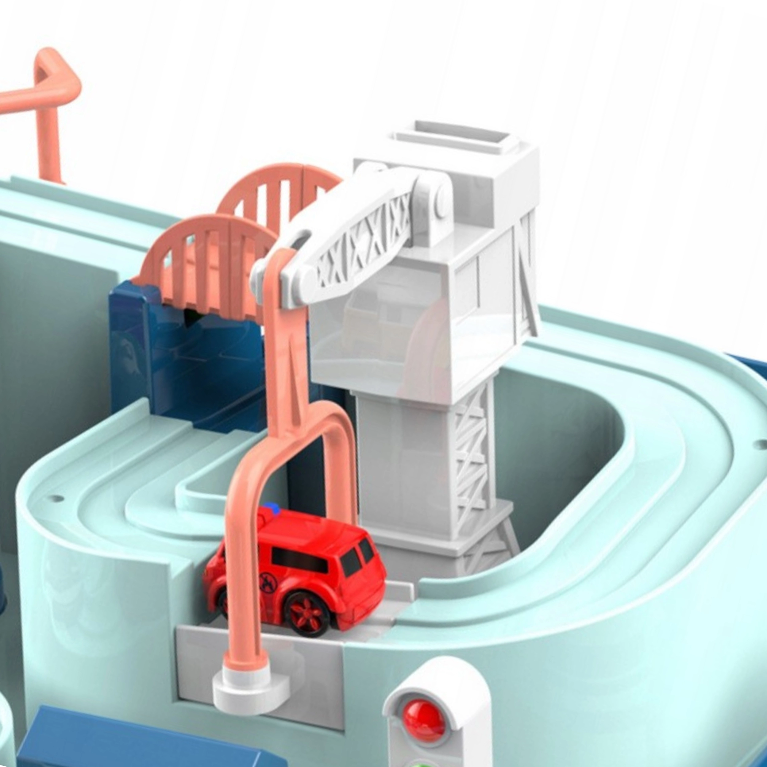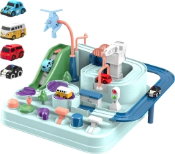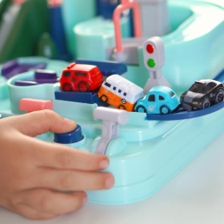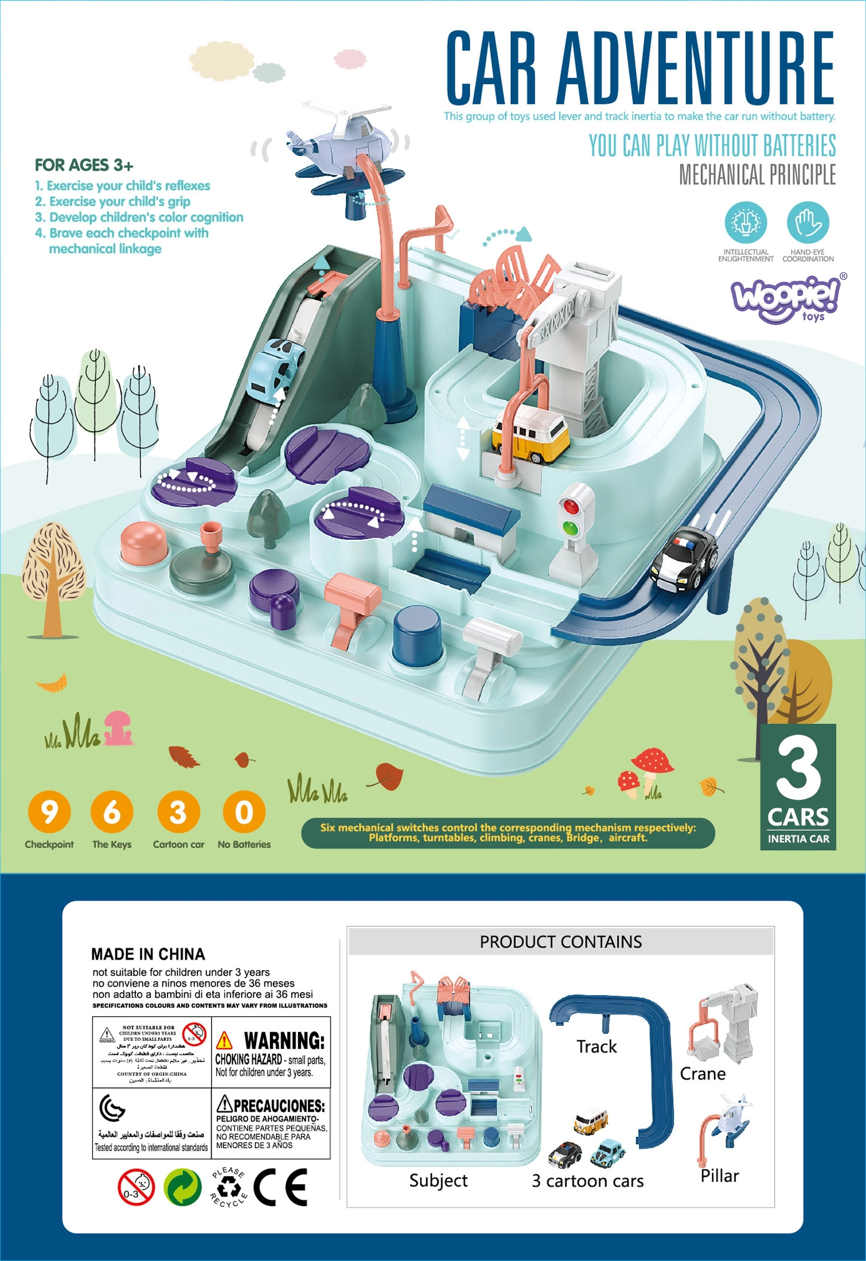 El conjunto incluye tres coches pequeños que pueden explorar libremente la pista según la imaginación del pequeño jugador. Los vehículos enriquecen el juego o permiten a los niños competir en el circuito. El trayecto por la pista puede parecer fácil, pero numerosos elementos como engranajes o puentes levadizos aseguran que el camino se vuelva lleno de adrenalina.