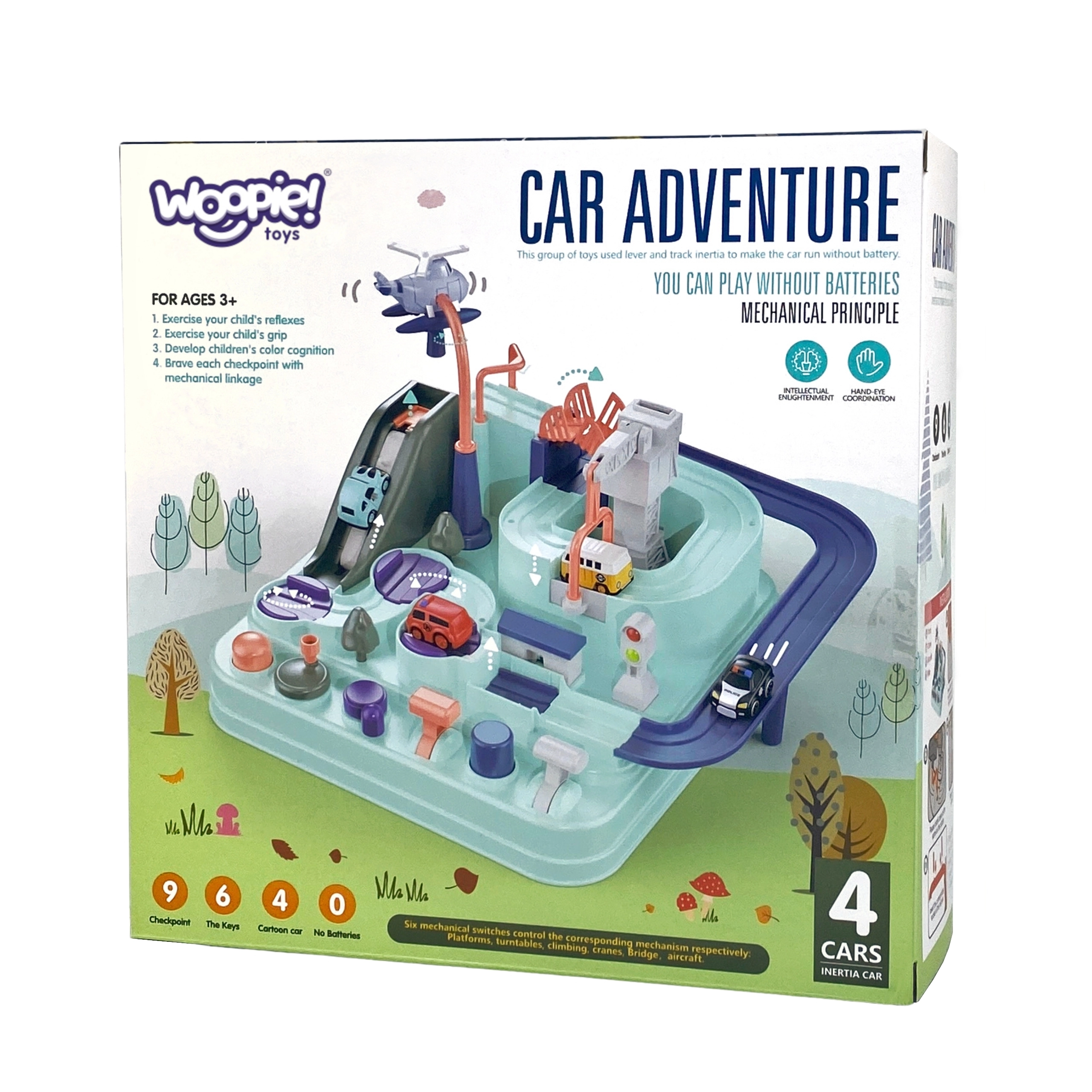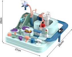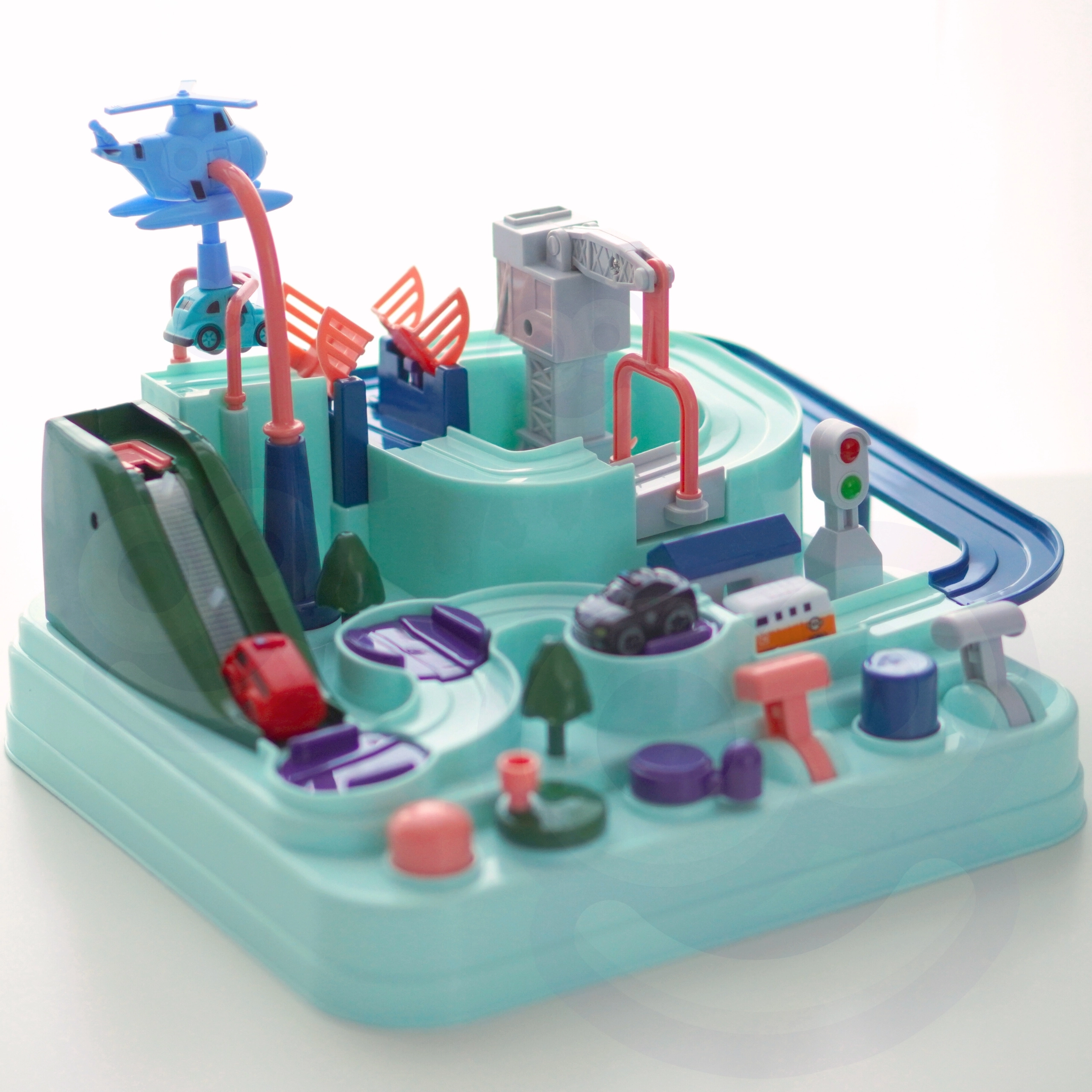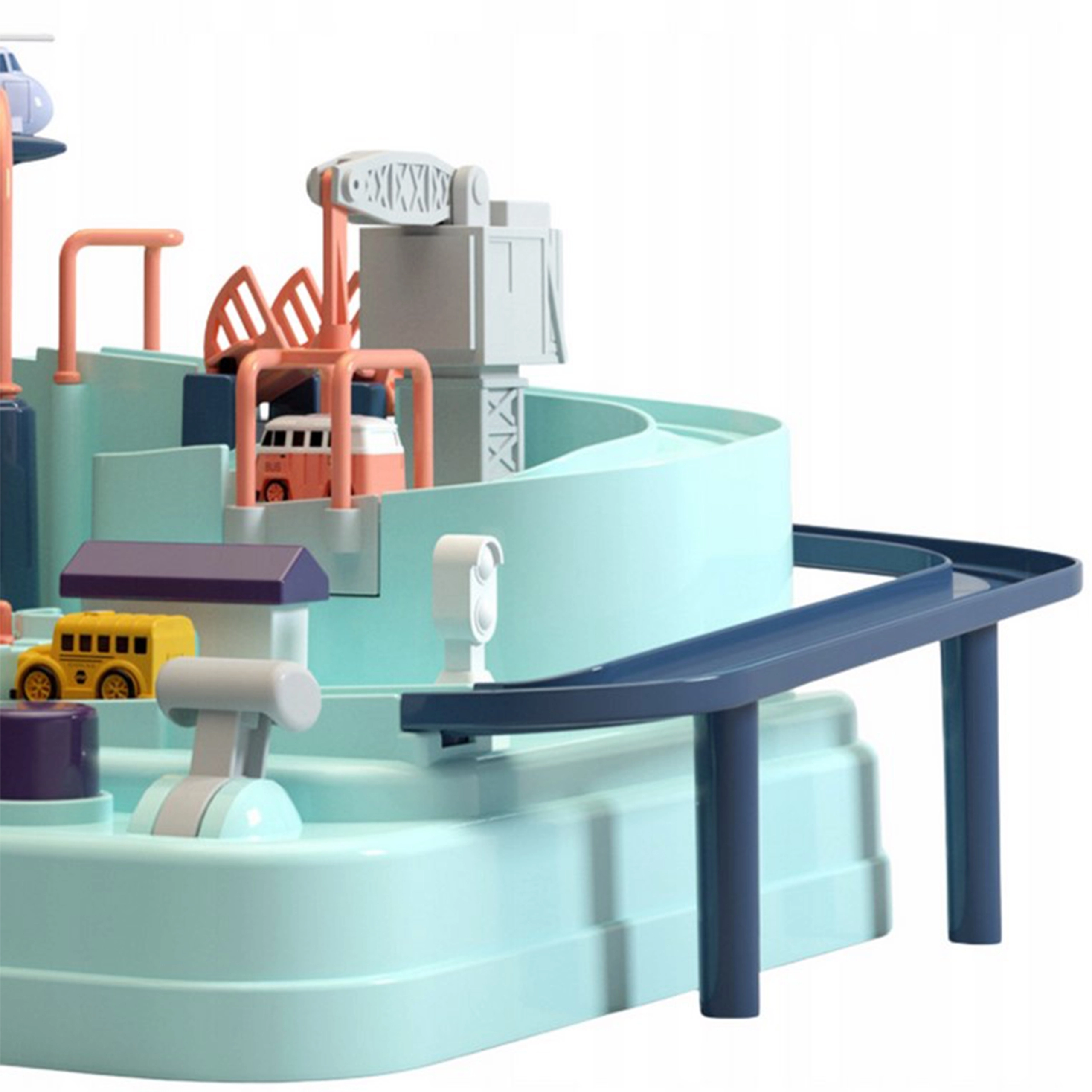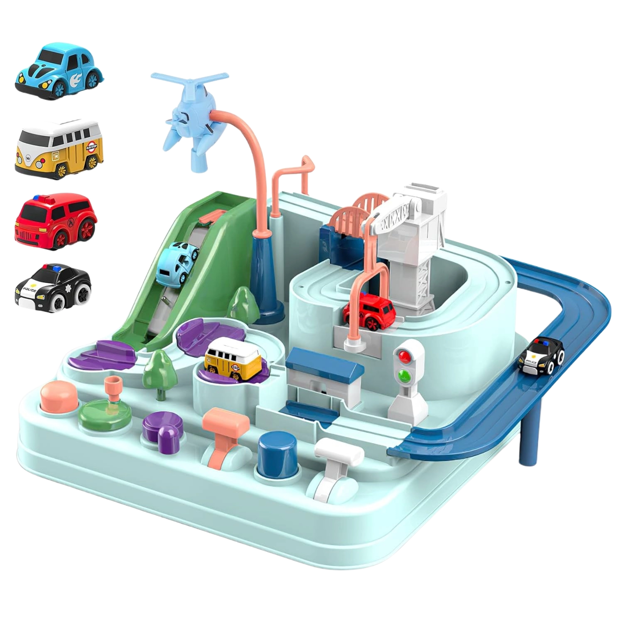 El conjunto incluye tres coches pequeños que pueden explorar libremente la pista según la imaginación del pequeño jugador. Los vehículos enriquecen el juego o permiten a los niños competir en el circuito. El trayecto por la pista puede parecer fácil, pero numerosos elementos como engranajes o puentes levadizos aseguran que el camino se vuelva lleno de adrenalina.