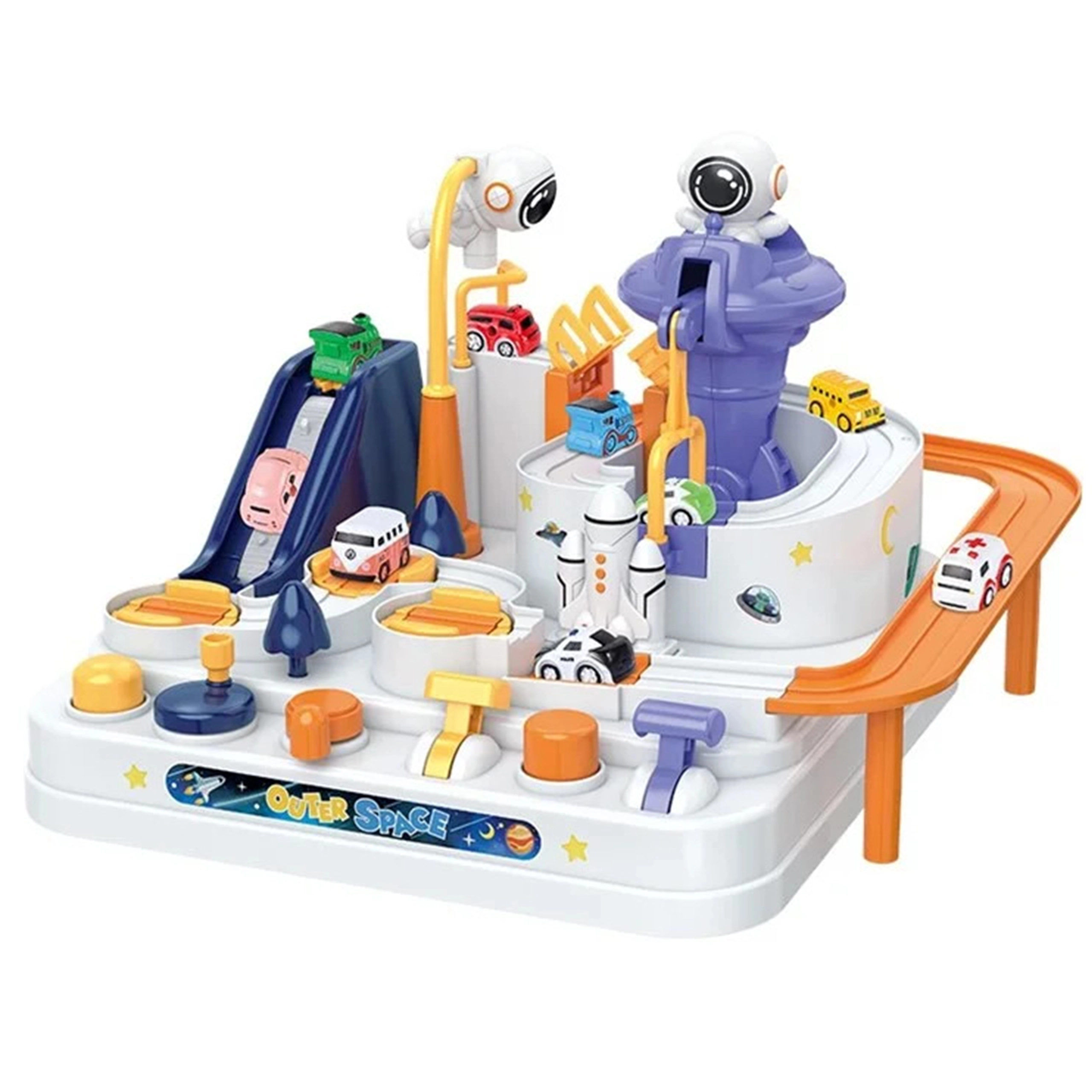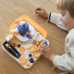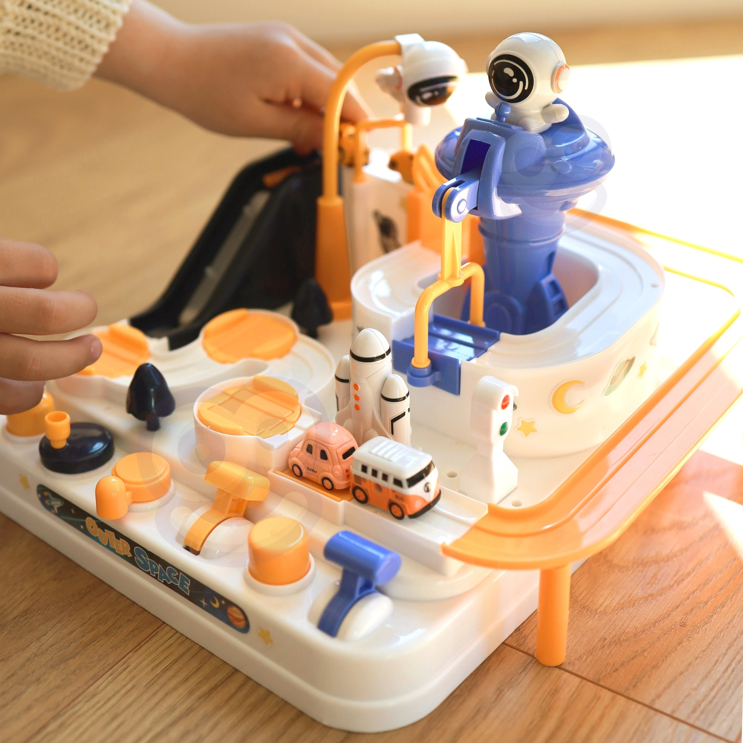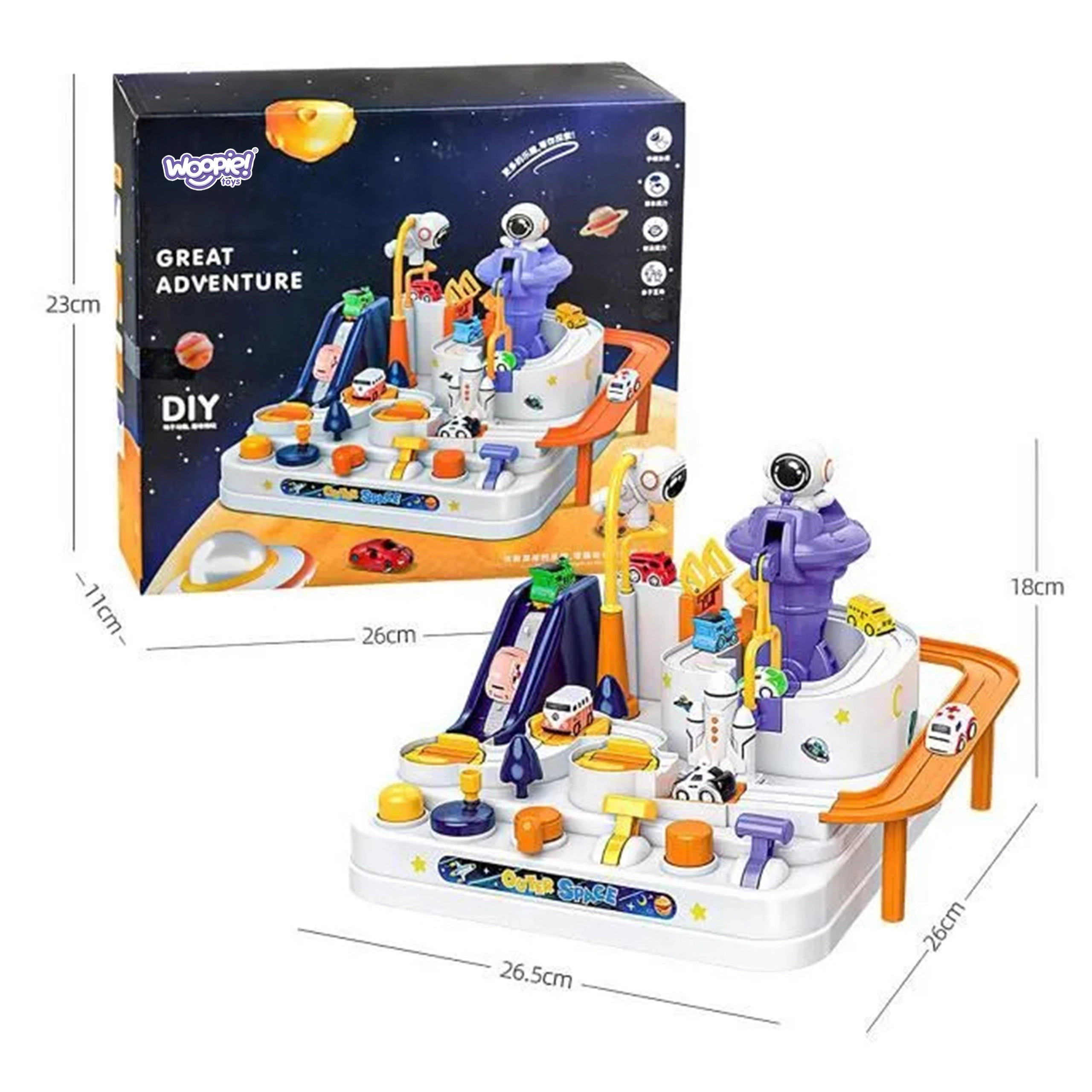 Descubre la divertida pista espacial interactiva con obstáculos, donde los niños controlan botones y palancas, accionan ascensores, bajan y suben puentes y, con la nave magnética, trasladan los cochecitos. Sin pilas, llena de elementos móviles, potencia la motricidad fina, el pensamiento lógico y la imaginación. Incluye 3 cochecitos para juego en solitario o competiciones.