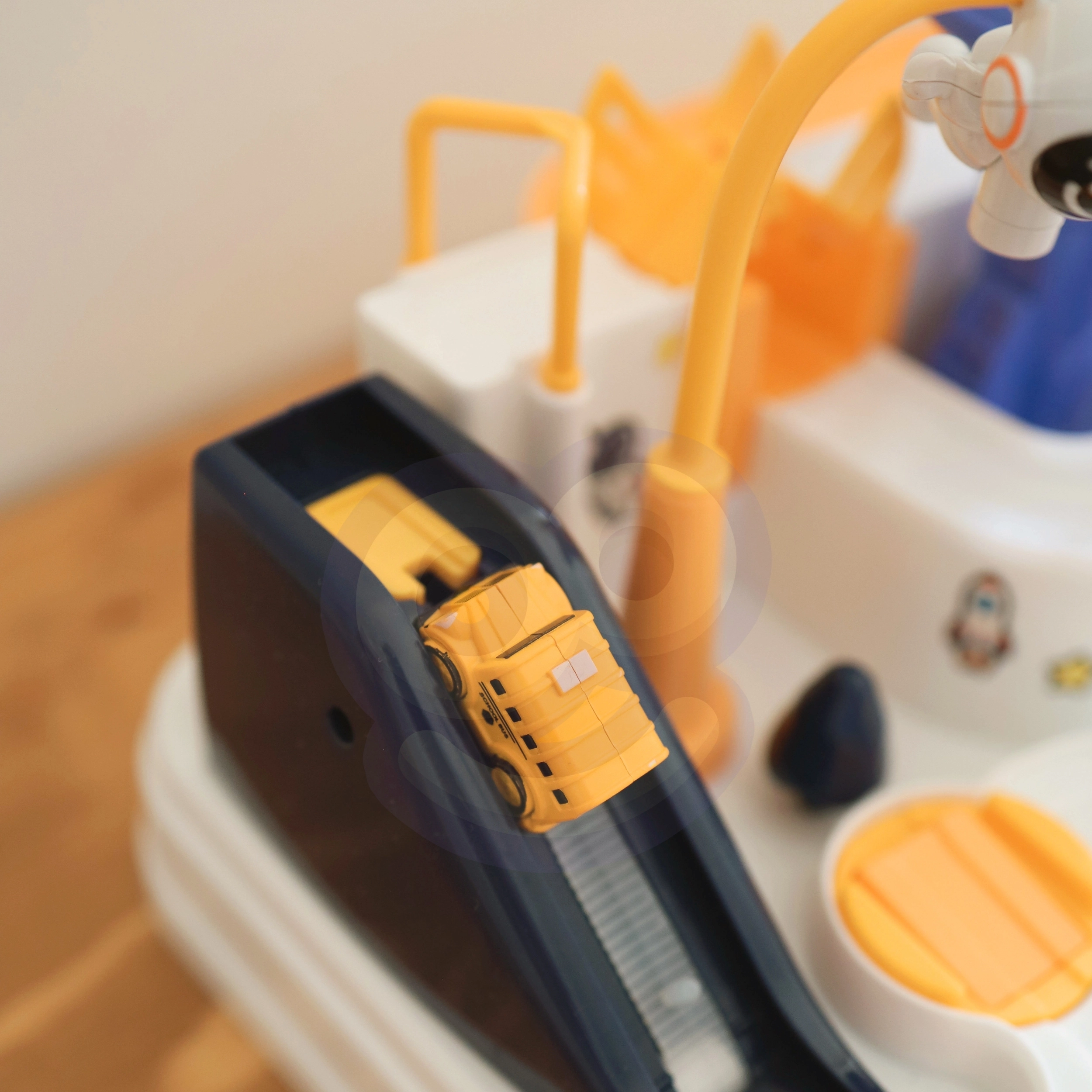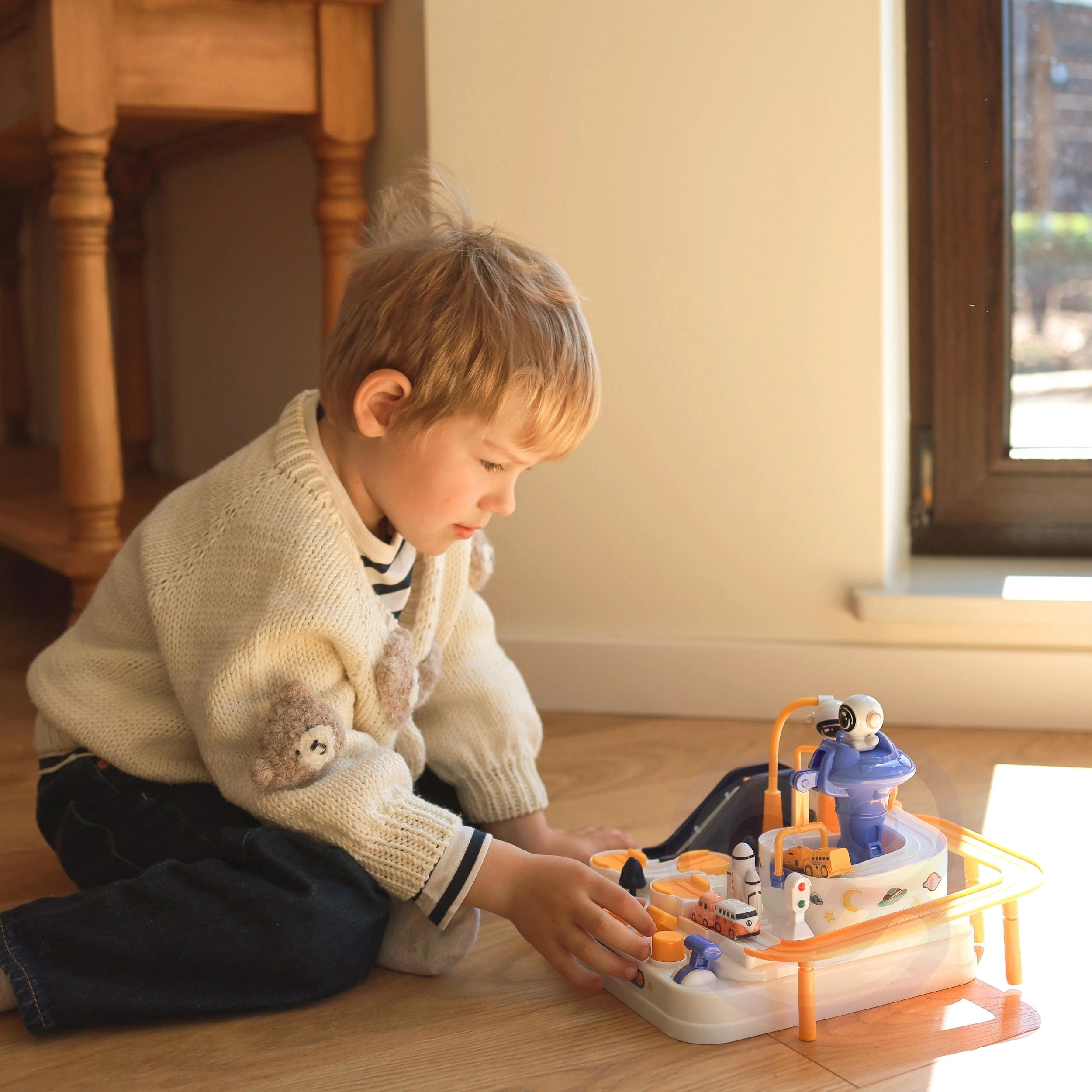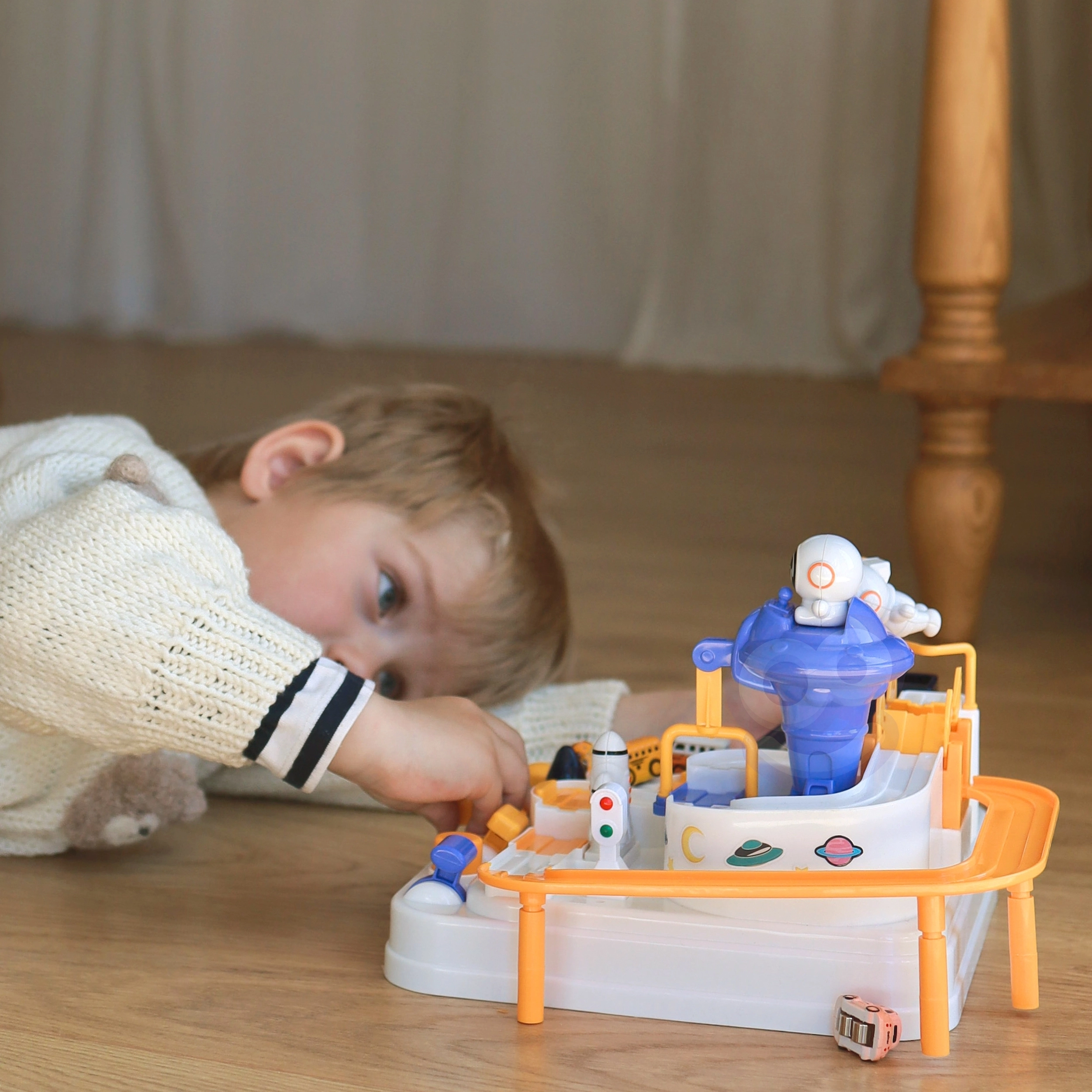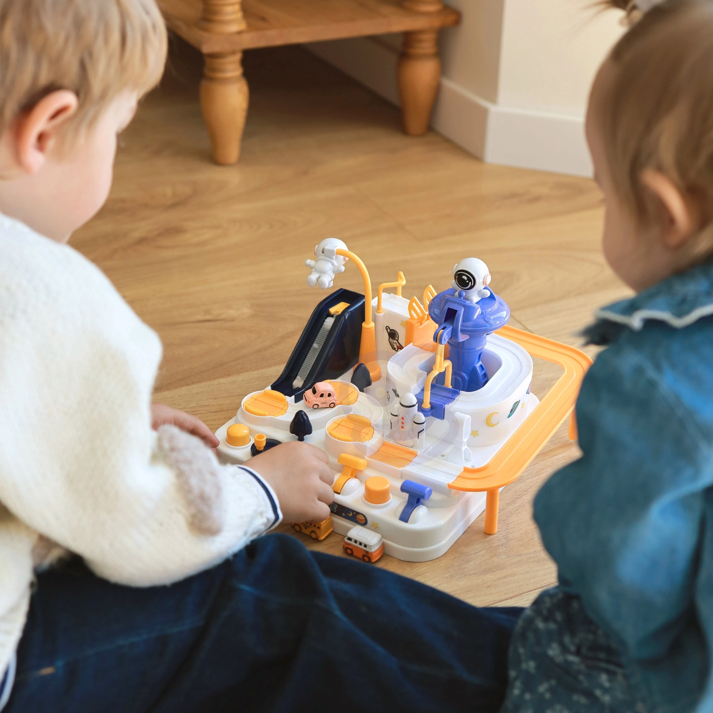 Descubre la divertida pista espacial interactiva con obstáculos, donde los niños controlan botones y palancas, accionan ascensores, bajan y suben puentes y, con la nave magnética, trasladan los cochecitos. Sin pilas, llena de elementos móviles, potencia la motricidad fina, el pensamiento lógico y la imaginación. Incluye 3 cochecitos para juego en solitario o competiciones.