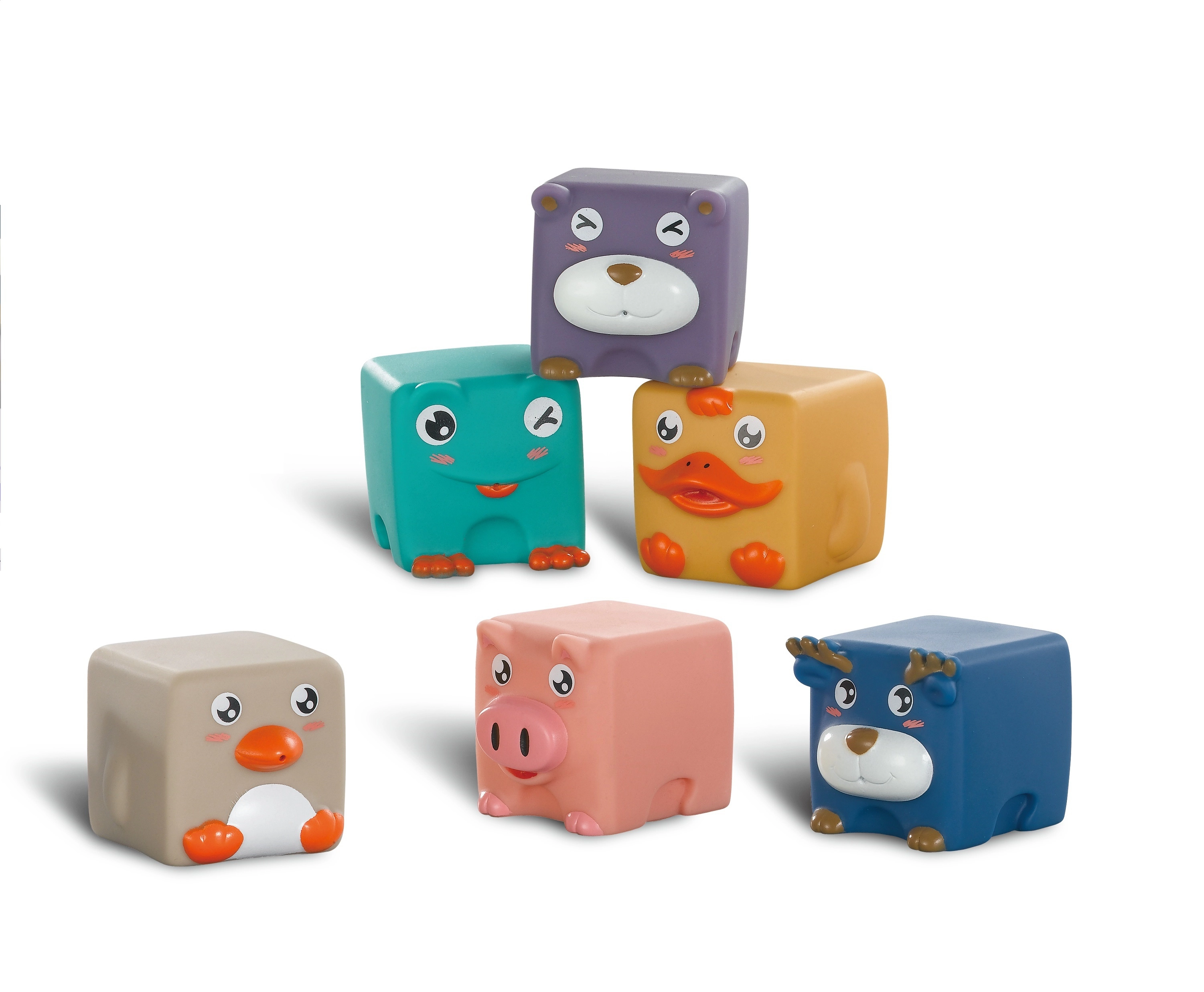 Los cubos sensoriales WOOPIE están diseñados para apoyar el desarrollo del niño a partir de los 12 meses. Cada cubo tiene diferentes formas en relieve con motivos de animales y está hecho de un material de alta calidad, blando y agradable al tacto, que emite sonidos al presionarlo.