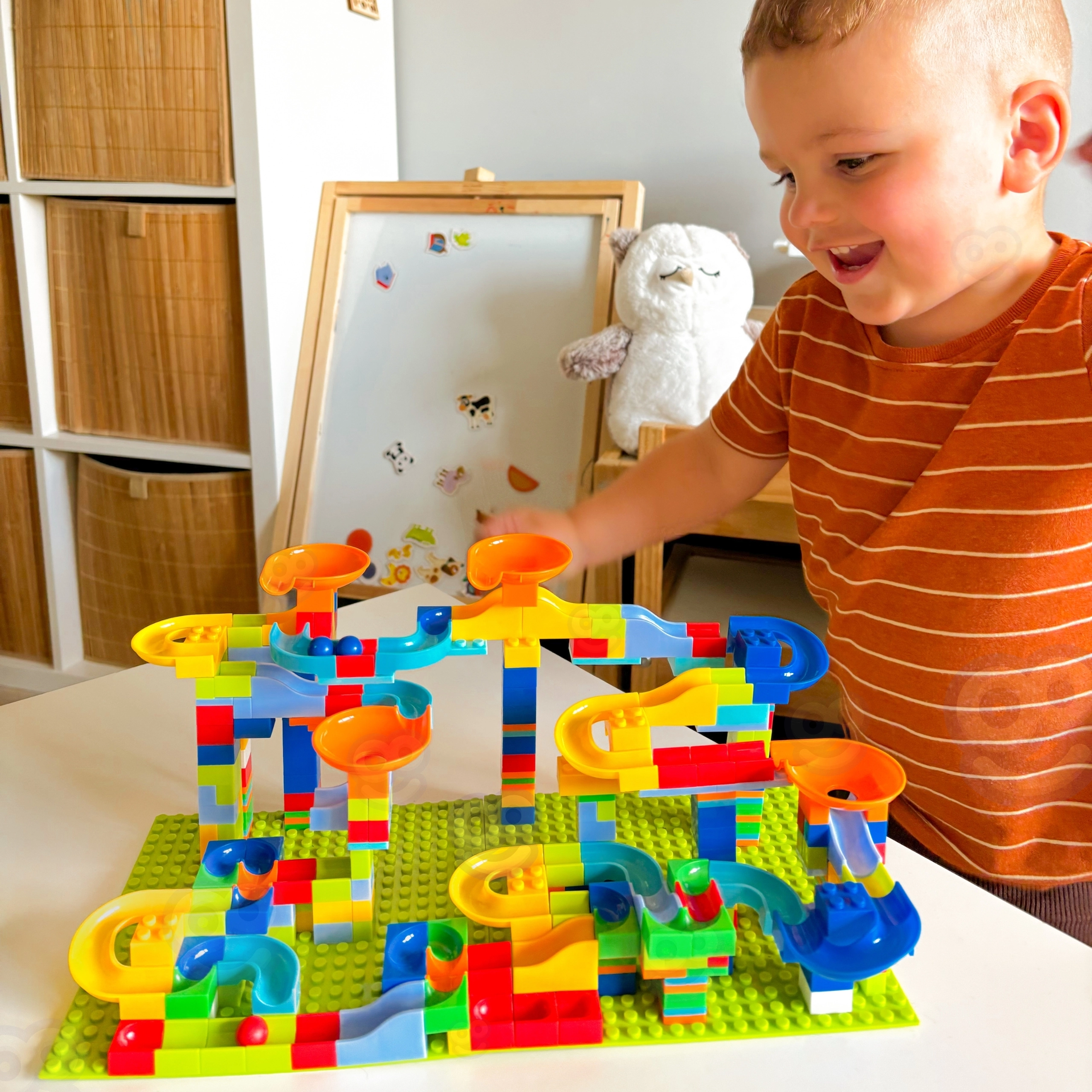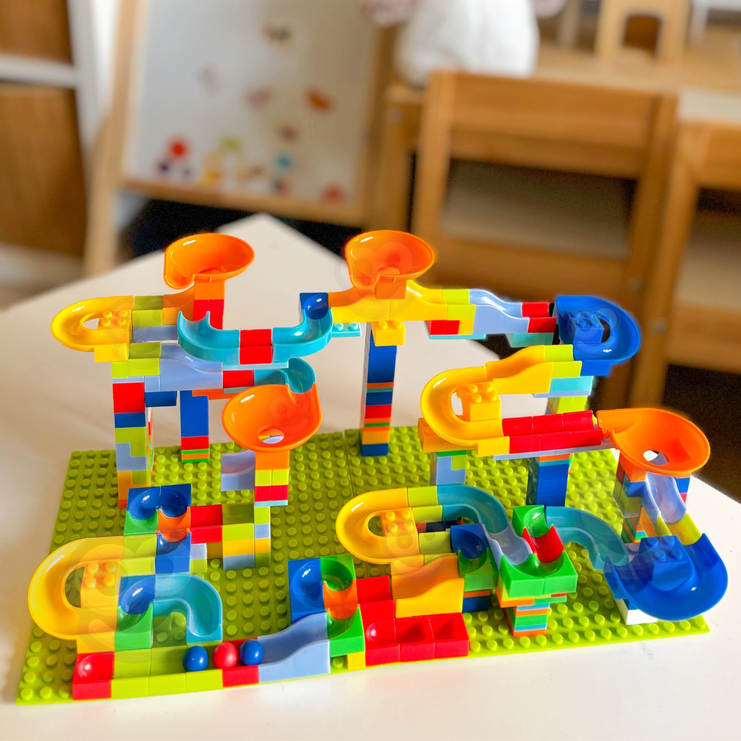 Este set de construcción creativo WOOPIE convierte a los niños en verdaderos arquitectos. A partir de diferentes piezas, construirán recorridos únicos llenos de curvas, descensos y obstáculos que hacen que las canicas ganen velocidad y que cada bajada sea diferente. 340 piezas, incluidas 2 grandes bases de 16 × 16 cm y una herramienta para separar bloques, garantizan una estructura firme y un montaje cómodo.