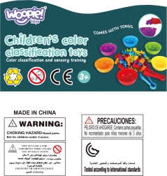 El set ofrece diversas herramientas para aprender a contar, los colores y el inglés, utilizando tarjetas y figuras.