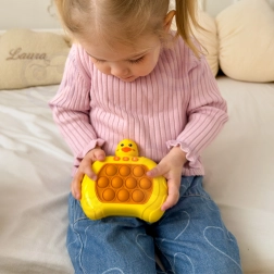 El adorable patito con burbujas pop-it ofrece mucho más que simplemente presionar: gracias a los botones integrados y a los sonidos, incorpora 4 divertidos modos de juego que motivan a los niños a mover los dedos, entrenan la memoria y mejoran los reflejos. Relajación y aprendizaje en un formato compacto.