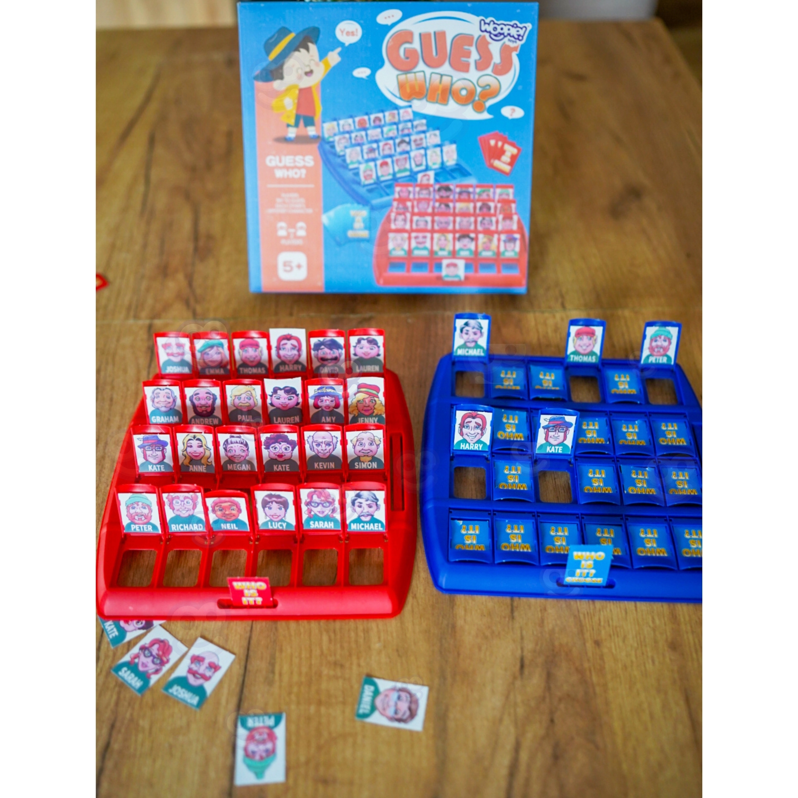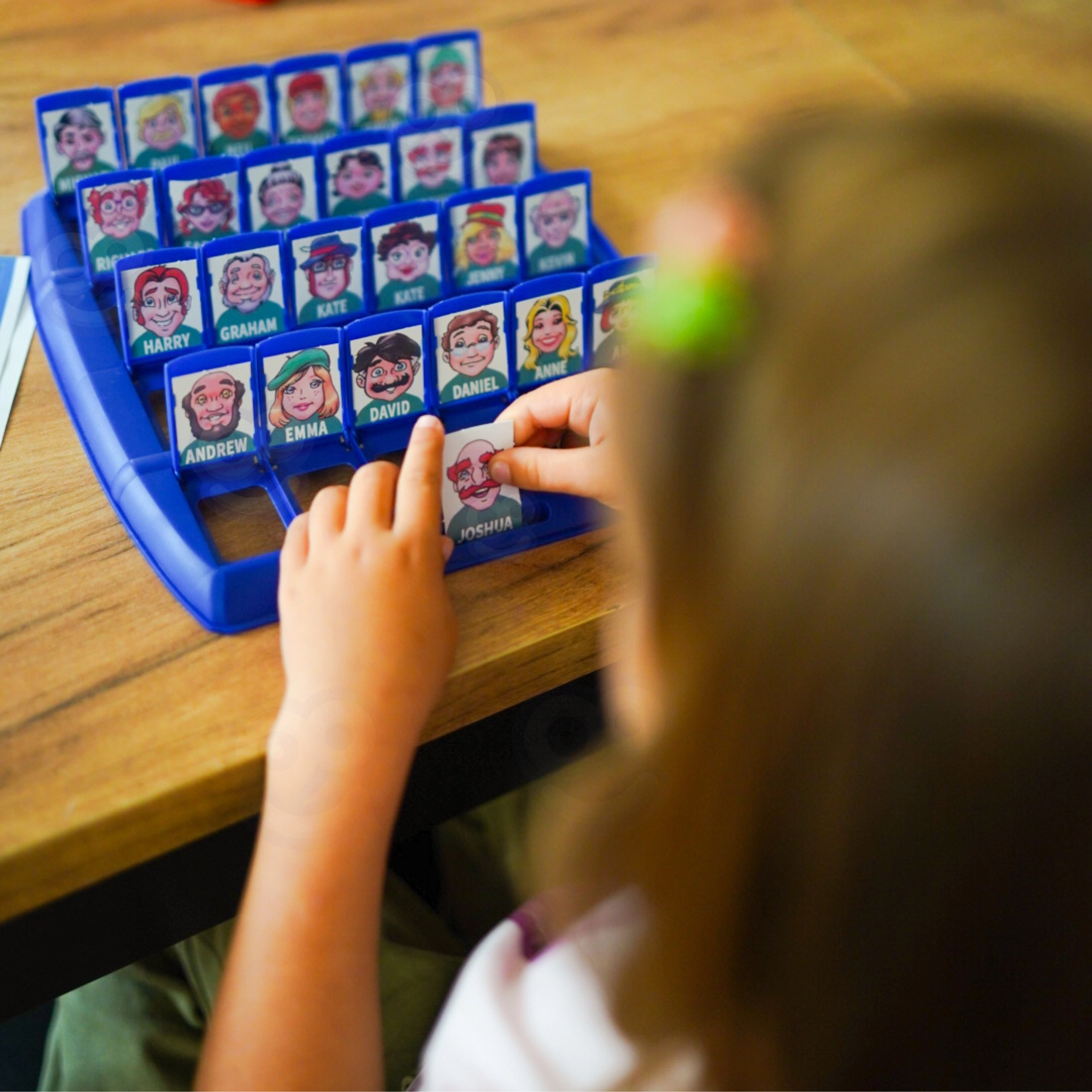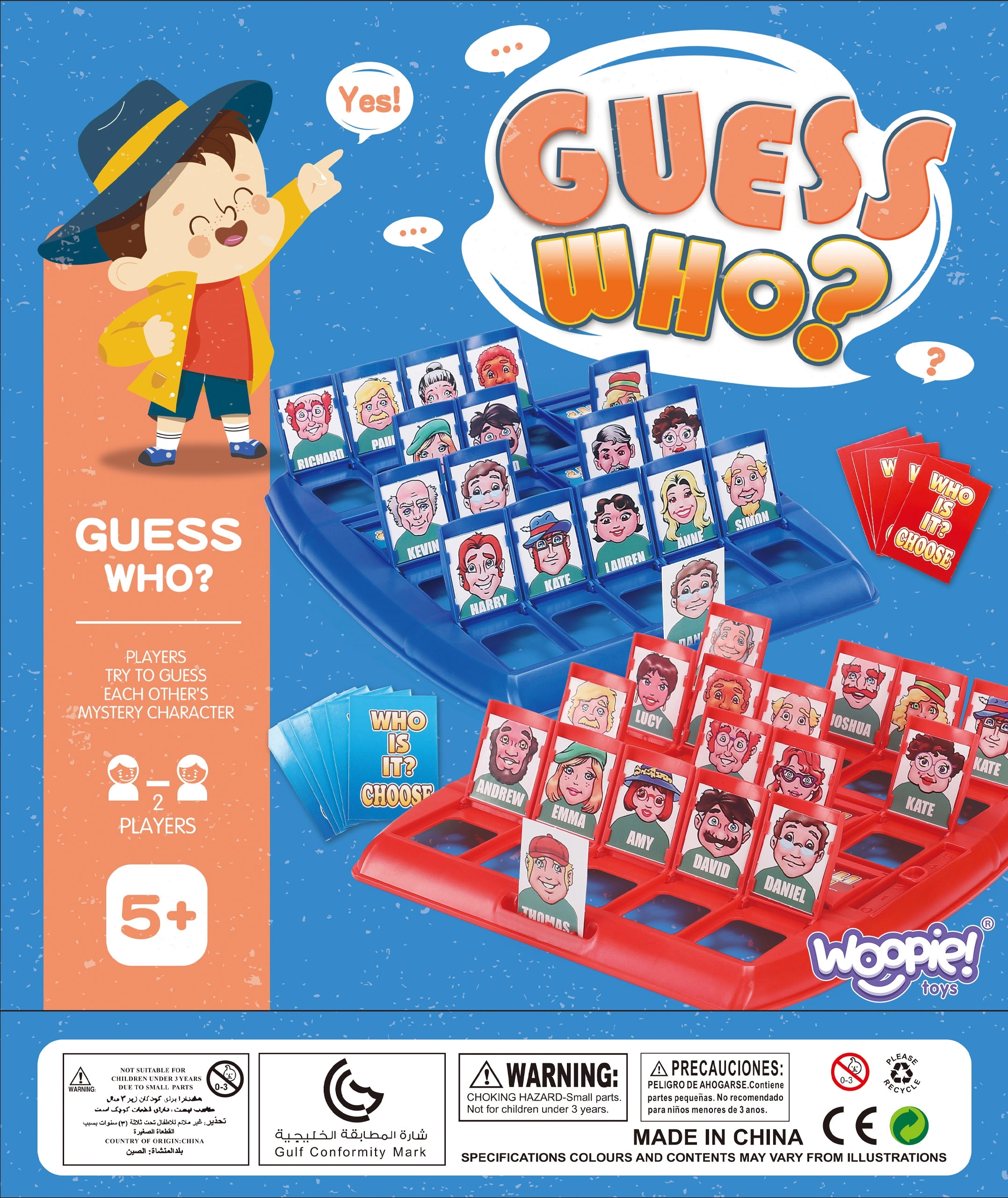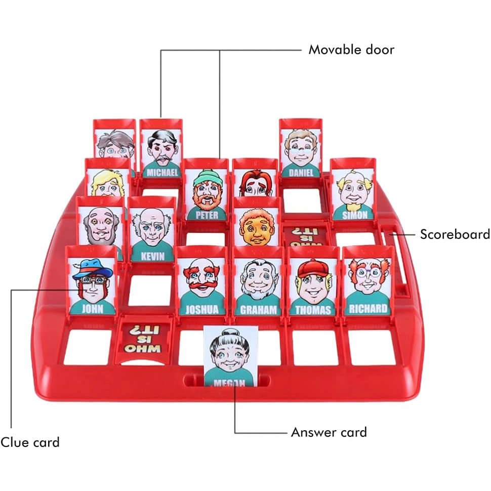 Enfrenta a dos jugadores y, mediante inteligentes preguntas de “sí/no”, descubre qué personaje ha elegido tu rival. Cada respuesta te ayuda a eliminar rostros del tablero: cierra las ventanillas correspondientes y llega a la solución el primero. El juego es rápido, intuitivo e ideal para niños a partir de 5 años.