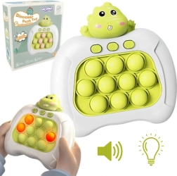 El juego electrónico antiestrés POP IT – dinosaurio es el compañero ideal tanto en viajes como en casa. Gracias a sus dimensiones compactas, puedes llevarlo fácilmente en la mochila. Sus divertidos efectos de luz y sonidos alegres motivan al juego y prolongan la atención de los niños.