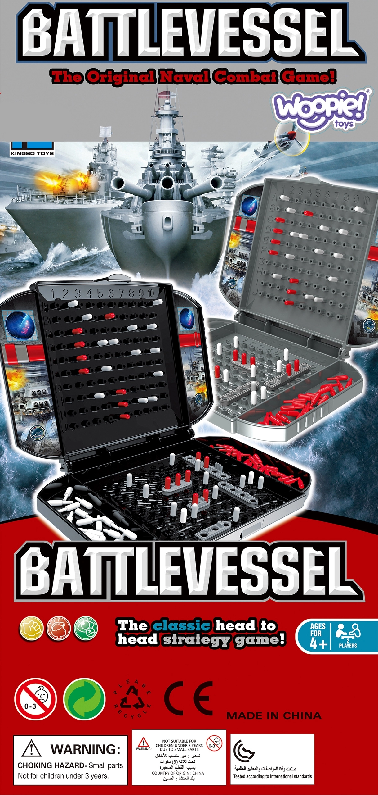 El juego está diseñado para dos personas mayores de 4 años. Todas las piezas, como los maletines y los barcos, están hechas de plástico resistente y cuentan con el certificado CE, lo que significa que son seguras y no tóxicas. ¡Disfruta de una emocionante batalla naval con este increíble juego!
