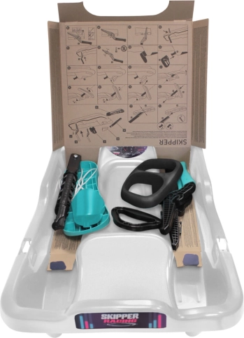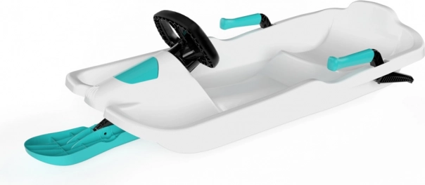 Skipper Titan es un trineo dirigible moderno diseñado para una conducción rápida y segura sobre la nieve. La robusta estructura de plástico con base de un solo esquí ofrece gran estabilidad y maniobrabilidad, mientras que el volante ergonómico permite giros fluidos incluso en terrenos variables.