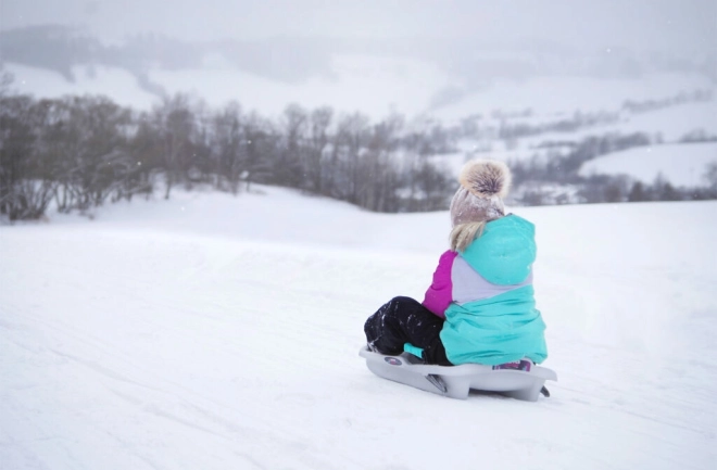 La seguridad es lo primero: los frenos integrados garantizan una desaceleración fiable y la zona de deformación frontal ayuda a absorber los impactos. Gracias a su bajo peso, el trineo se transporta fácilmente y, con la cuerda de arrastre, podrás subirlo cómodamente de vuelta a la colina.