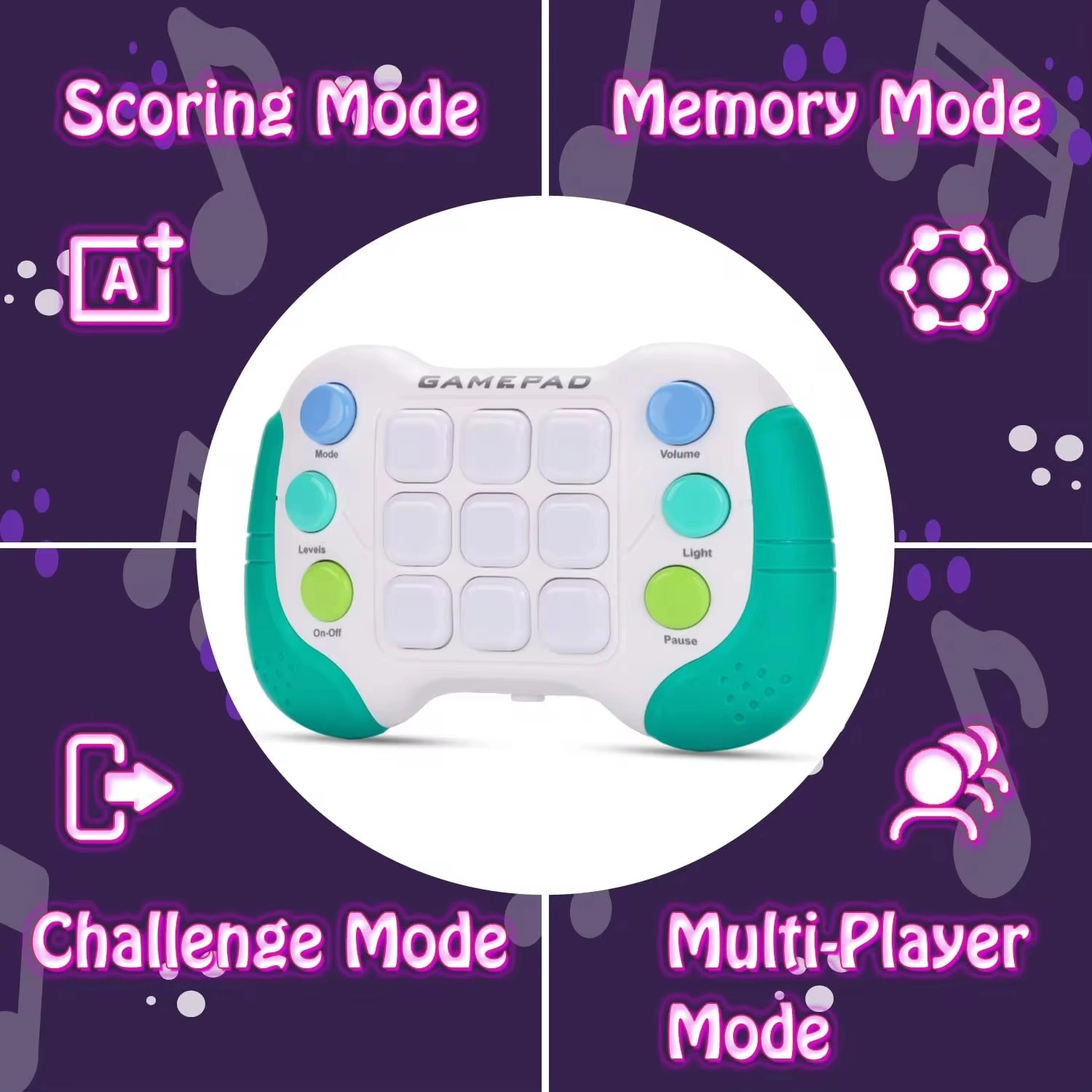 El gamepad permite cambiar rápidamente de modo, modificar el nivel de dificultad y ajustar la retroiluminación LED. La práctica función de apagado automático tras 10 minutos ahorra batería. Funciona con 3× AAA (no incluidas).