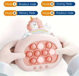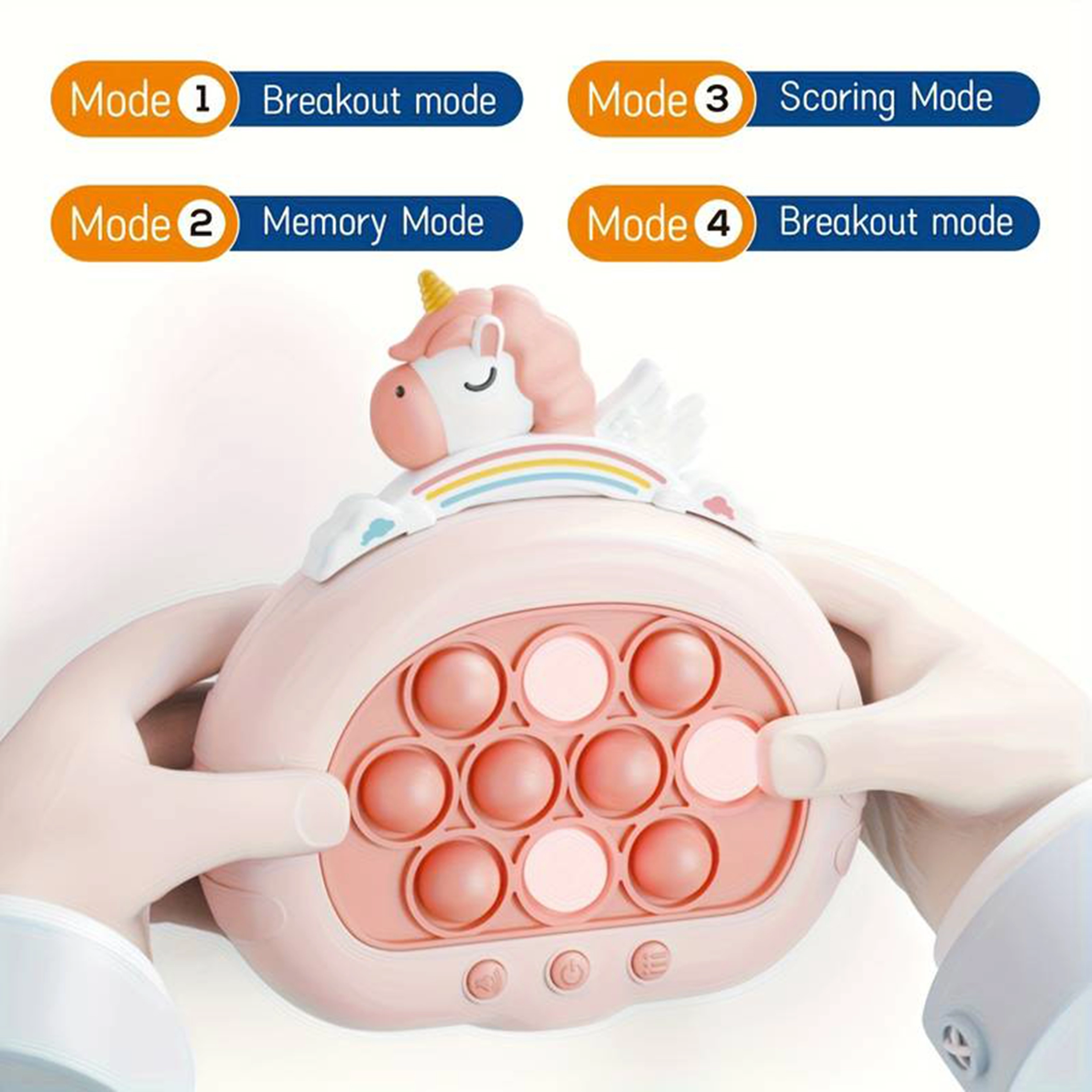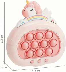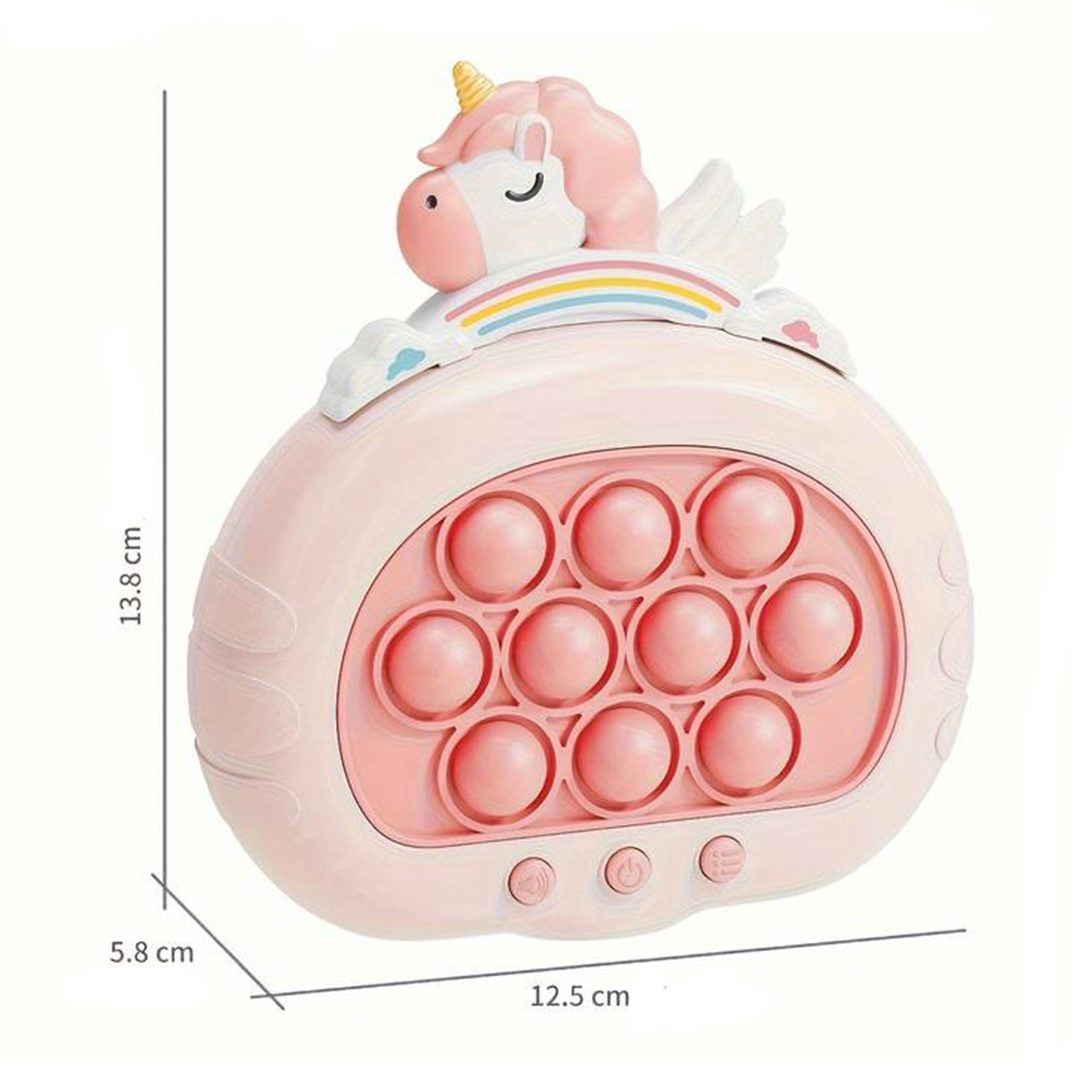 El juego eléctrico Unicornio Pop It es una gran diversión y una herramienta de desarrollo para niños a partir de los tres años. Niños y adultos disfrutarán presionando las burbujas y compitiendo. El juego Pop It ofrece varios modos de juego que desarrollan distintas habilidades: