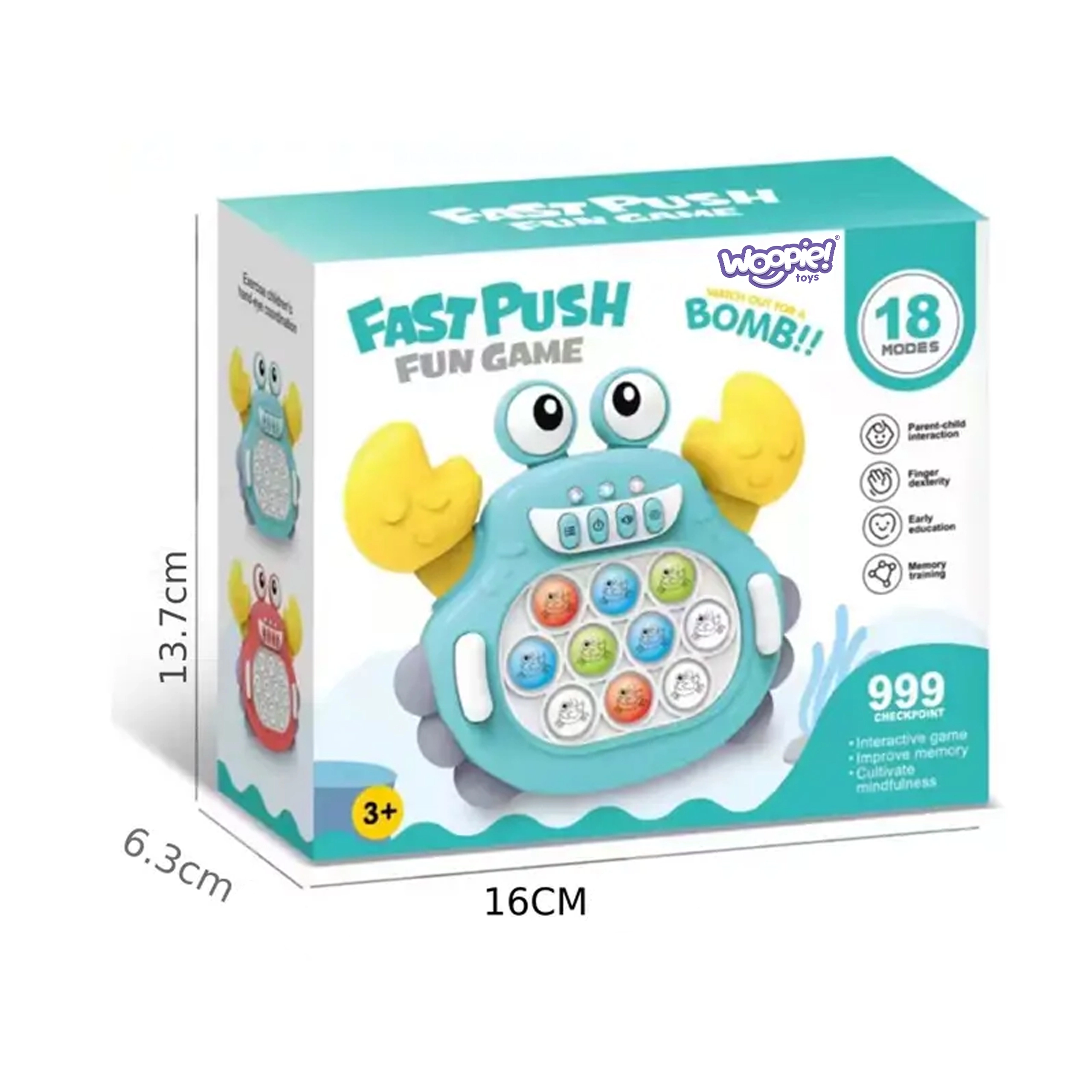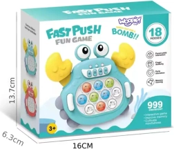 El juguete electrónico Pop It Cangrejo es una excelente manera de desarrollar la mente, la destreza manual y la coordinación en los niños. Gracias a su diseño compacto, puedes llevarlo a cualquier parte. El juguete está diseñado para niños a partir de 3 años y ofrece hasta 999 niveles, que proporcionan mucha diversión también para adultos.