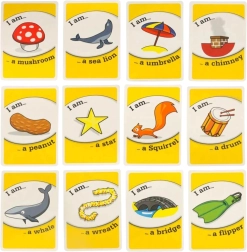 Las cartas con sencillas inscripciones en inglés fomentan la ampliación del vocabulario y la comprensión. Los niños aprenden de forma natural mientras adivinan y formulan las preguntas adecuadas.