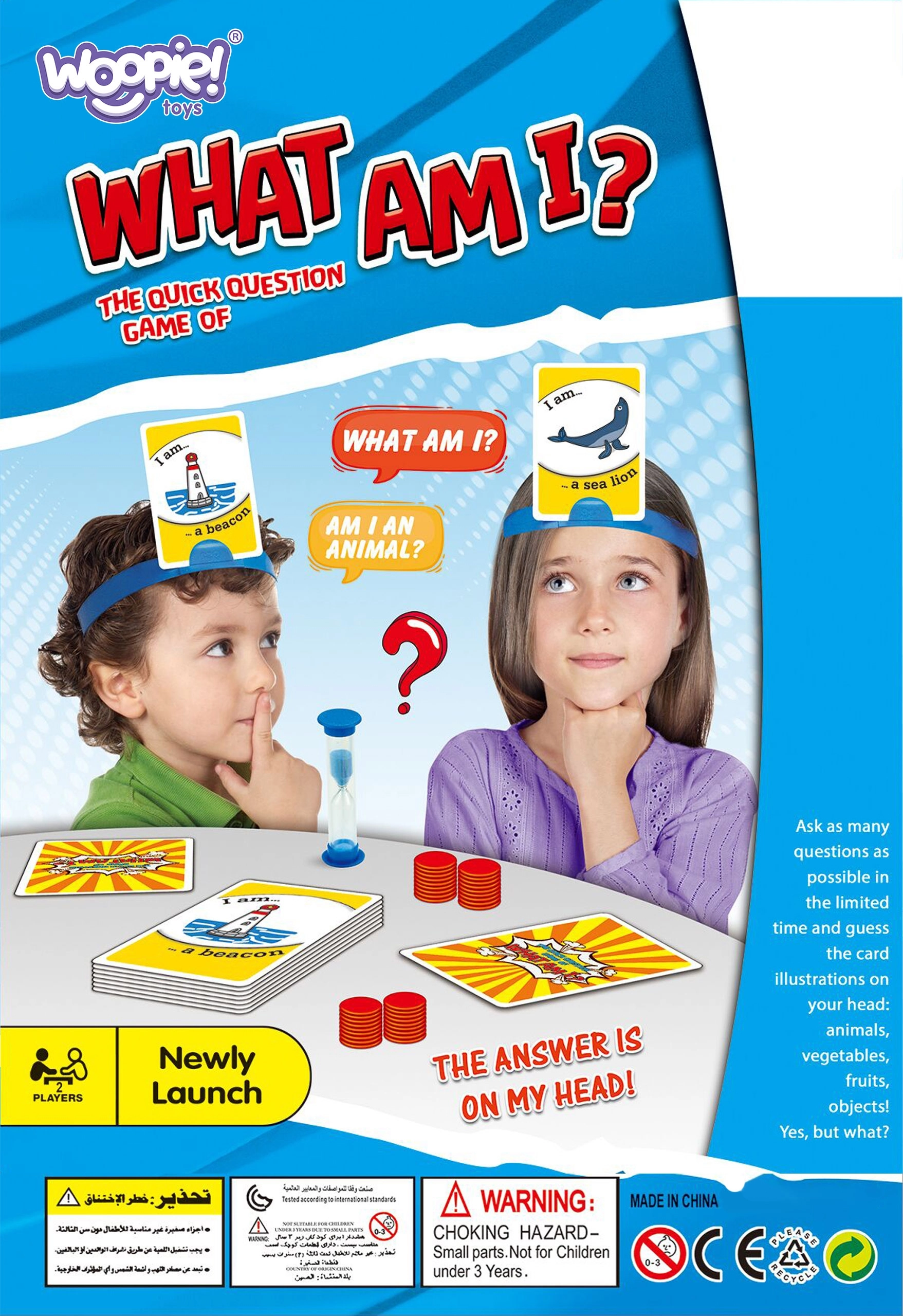 WOOPIE ¿Adivina quién soy? es un juego familiar y educativo muy entretenido, en el que llevas una diadema con una carta en la cabeza y, mediante preguntas bien planteadas, descubres qué o quién eres. Gracias a sus reglas sencillas y imágenes atractivas, los niños lo comprenden rápidamente y disfrutan de mucha diversión y aprendizaje.