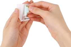 Despegar, colocar, presionar con el aplicador de madera y retirar la lámina. Manualidad rápida, limpia y segura, que incluso los más pequeños pueden realizar.
