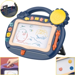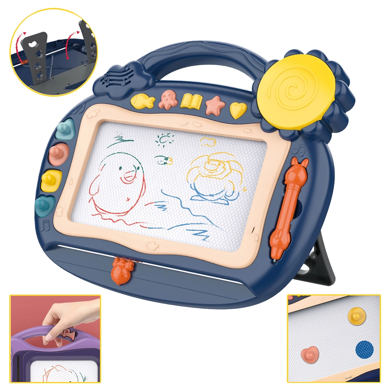 La pizarra de dibujo magnética WOOPIE para niños ofrece una porción infinita de diversión creativa sin desorden. Fomenta la escritura, el dibujo y el desarrollo de la motricidad fina. Con la goma deslizante puedes borrar fácilmente el dibujo y empezar de nuevo. Incluye stylus, 4 sellos y botones de sonido multifunción con efectos, canciones, sonidos electrónicos, alfabeto en inglés y tambor. Gracias al práctico asa y a las patas abatibles, la pizarra es ideal para viajes y para la mesa.
