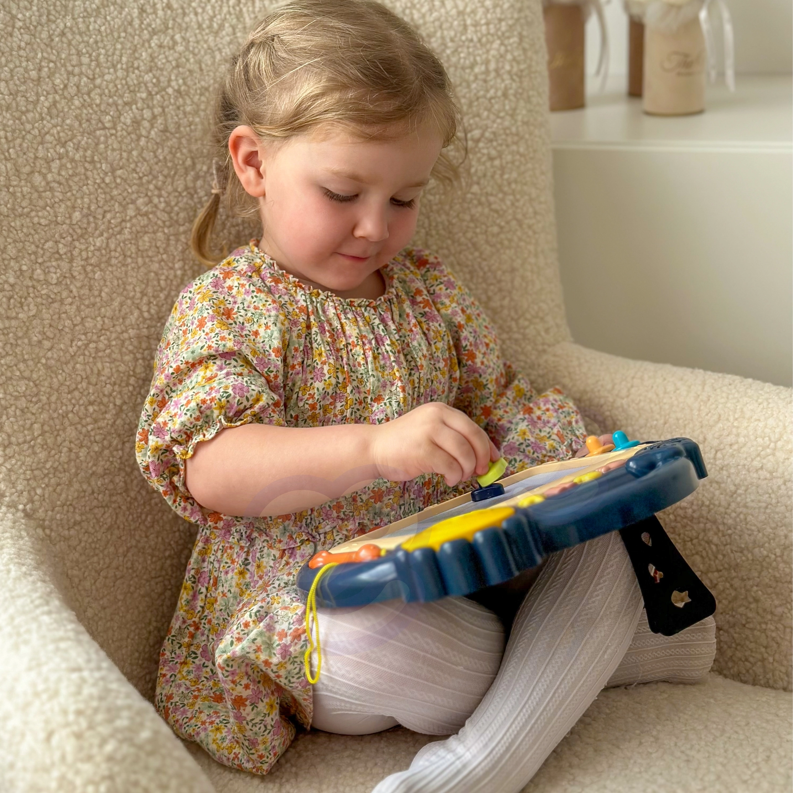 Los botones multifunción ofrecen efectos de sonido, canciones infantiles, sonidos electrónicos, pronunciación del alfabeto en inglés y tambor. Diversión que desarrolla el oído y el sentido del ritmo.