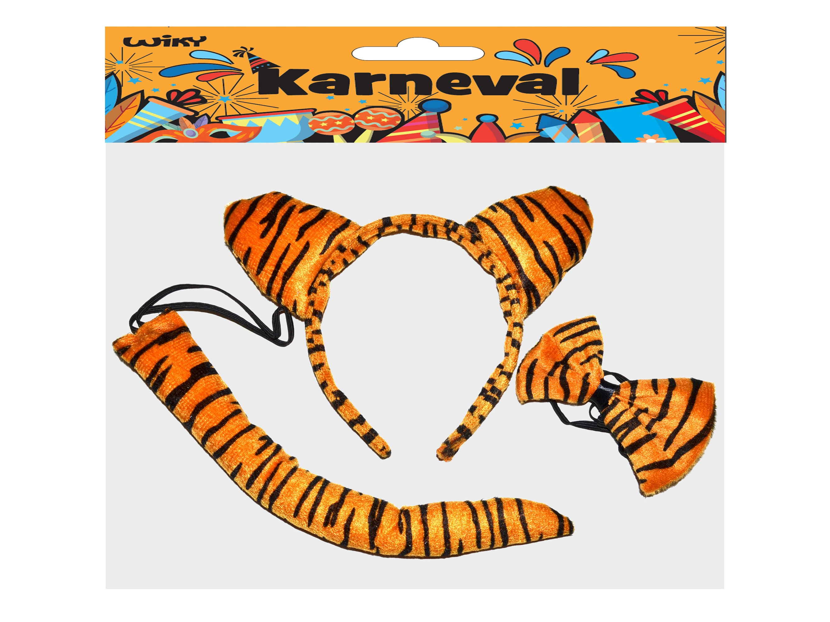 ¡Conviértete en un adorable tigre en un instante! Este set de carnaval para niños incluye todo lo necesario para una transformación rápida y cómoda: orejitas de tigre en diadema, pajarita para el cuello y cola elegante. Ideal para carnavales, funciones escolares y celebraciones temáticas.