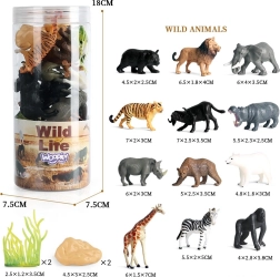 - Set completo: 12 figuras de animales salvajes + 2 plantas + 2 rocas (16 piezas en total)