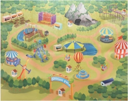 Incluye un tapete de fieltro con motivo de parque de dinosaurios que crea un entorno temático y claro para las historias.
