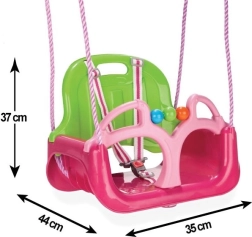 El columpio rosa WOOPIE 3 en 1 está diseñado para niños a partir de 12 meses y se adapta a su edad y habilidades. El respaldo y la barra frontal fácilmente desmontables permiten cambiar rápidamente de un asiento seguro para bebés a un asiento más grande para niños. Los plásticos resistentes y lisos son agradables al tacto, fáciles de limpiar y resisten el uso en exteriores.