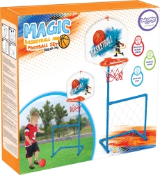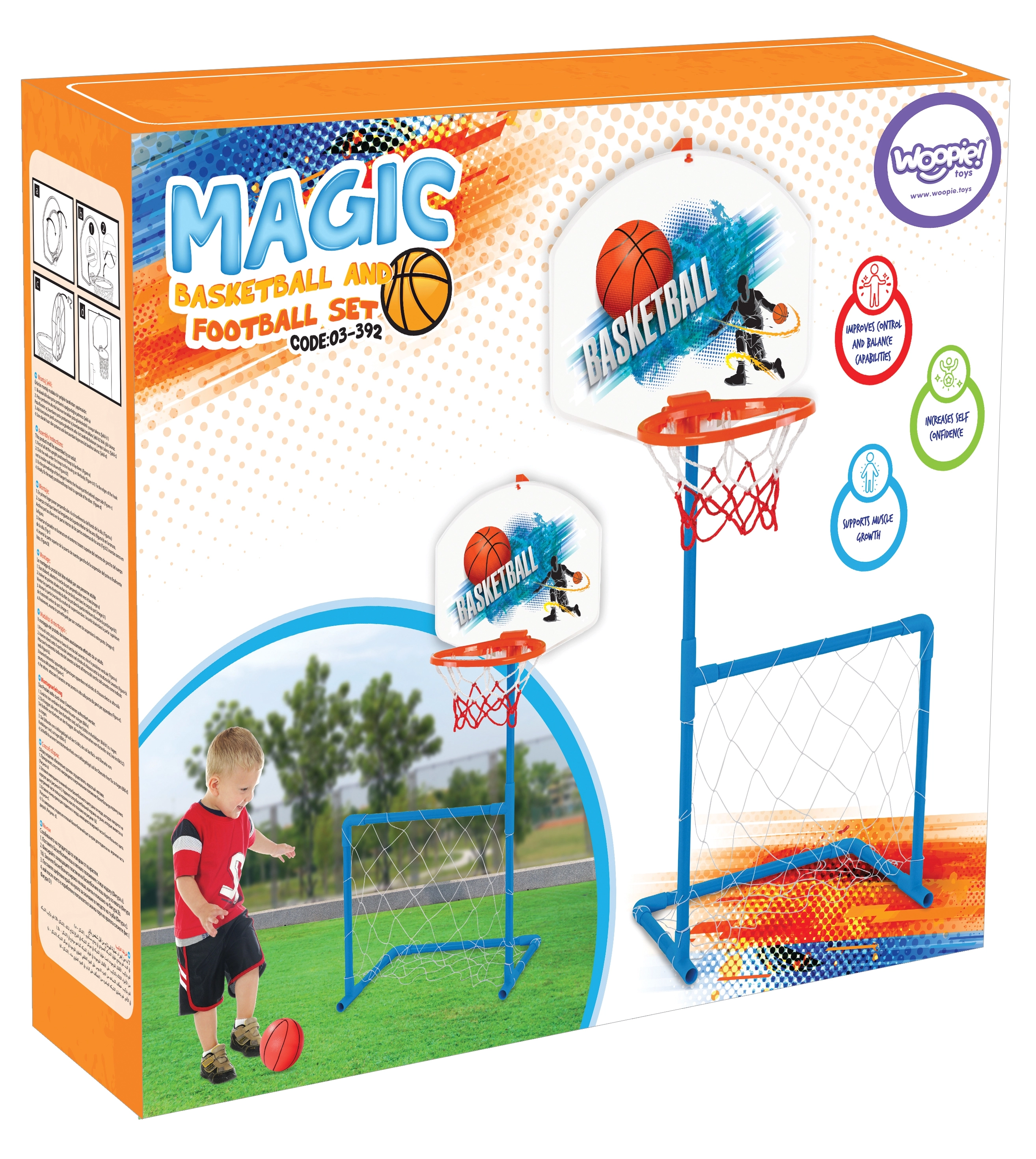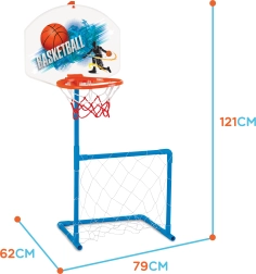 Este inteligente set deportivo 2 en 1 ofrece a los niños posibilidades infinitas: encestar y también disputar partidos de fútbol con amigos. El aro con una altura aproximada de 121 cm es ideal para los jugadores más pequeños, que así ganan confianza en el movimiento y la coordinación. El set está fabricado con materiales adecuados para niños y está listo para momentos de juego tanto en el salón como en el jardín.