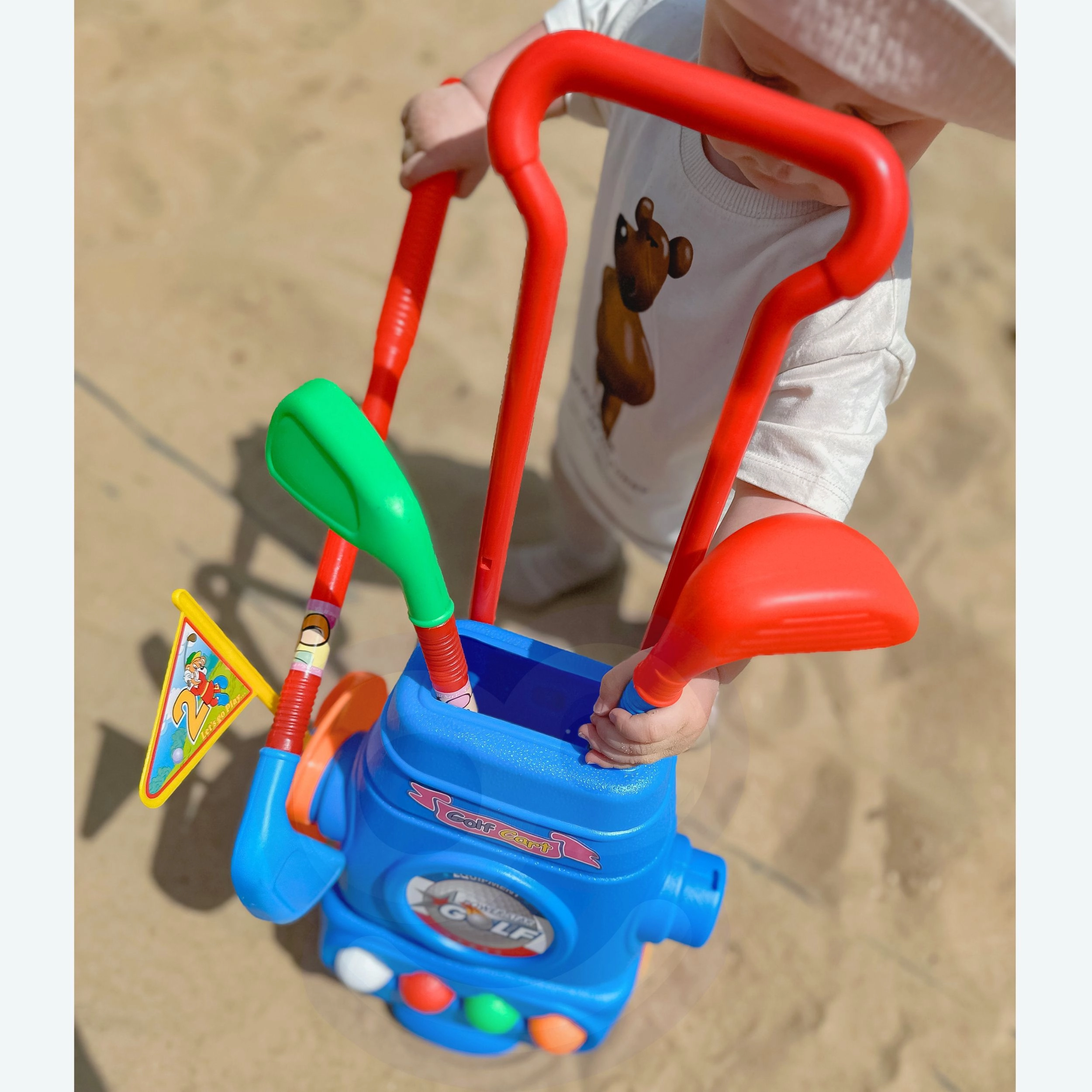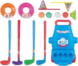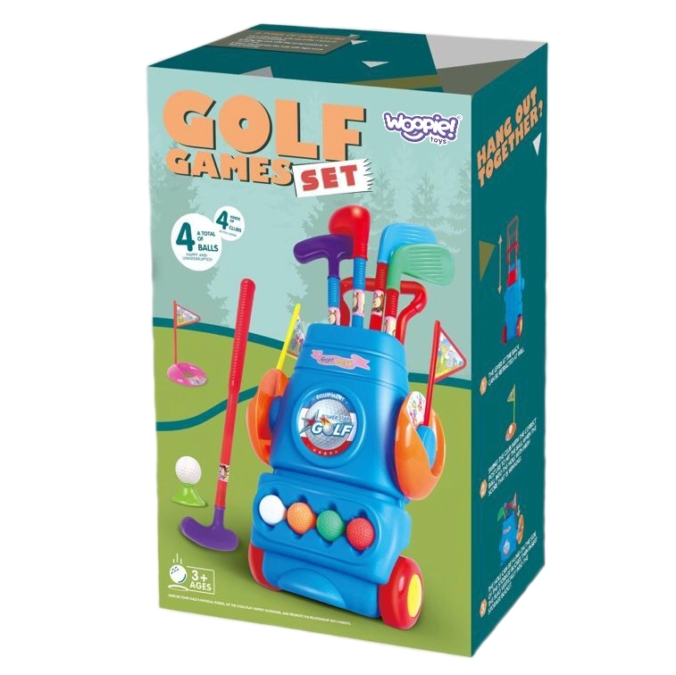 El juego de golf para niños Woopie es una excelente manera de pasar el tiempo no solo en el jardín, sino también en casa. El producto es adecuado para niños mayores de 3 años e incluye 4 palos de golf, 4 pelotas de diferentes colores y dos hoyos con banderines. Cuenta con prácticas ruedas para un transporte cómodo.