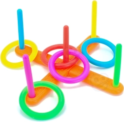 Incluye 5 aros y estacas de colores, perfectos para mejorar la precisión y la coordinación.