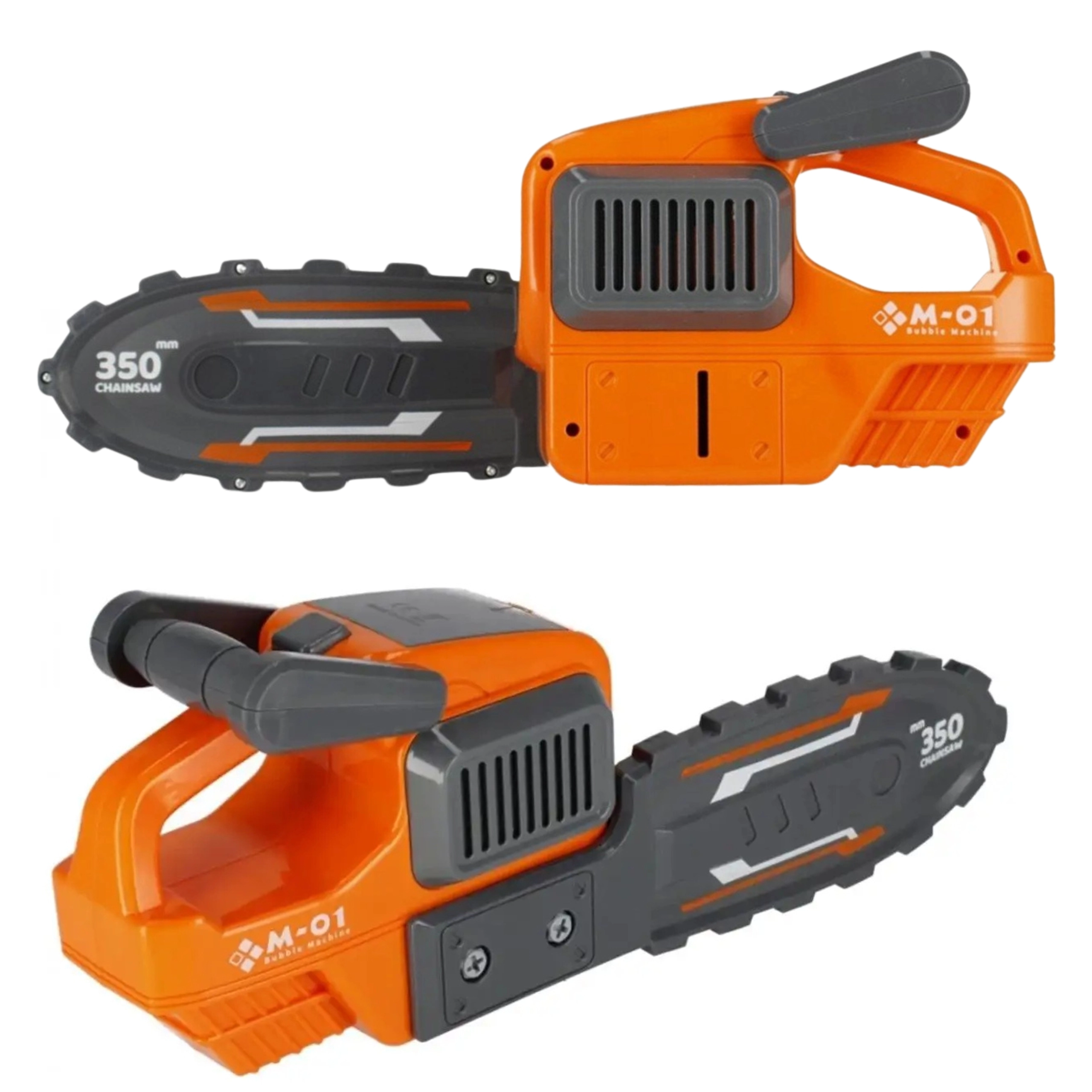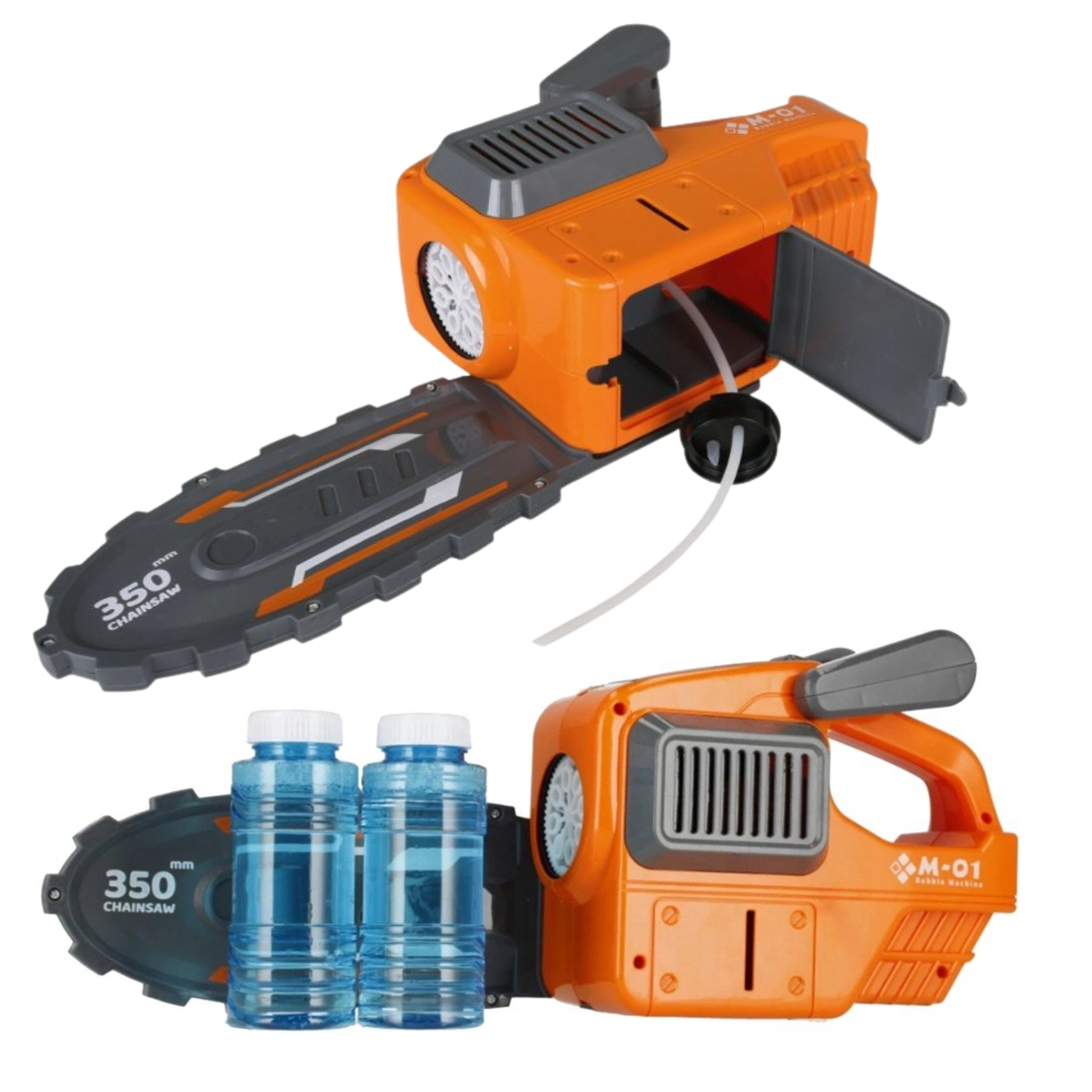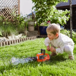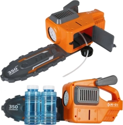 Transformación rápida del aspecto de sierra a un elegante generador de burbujas. Un juguete, dos formas de juego atractivas.