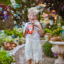 Empieza la diversión de las burbujas de inmediato. Dos botellas de repuesto prolongan el juego sin recargas frecuentes.