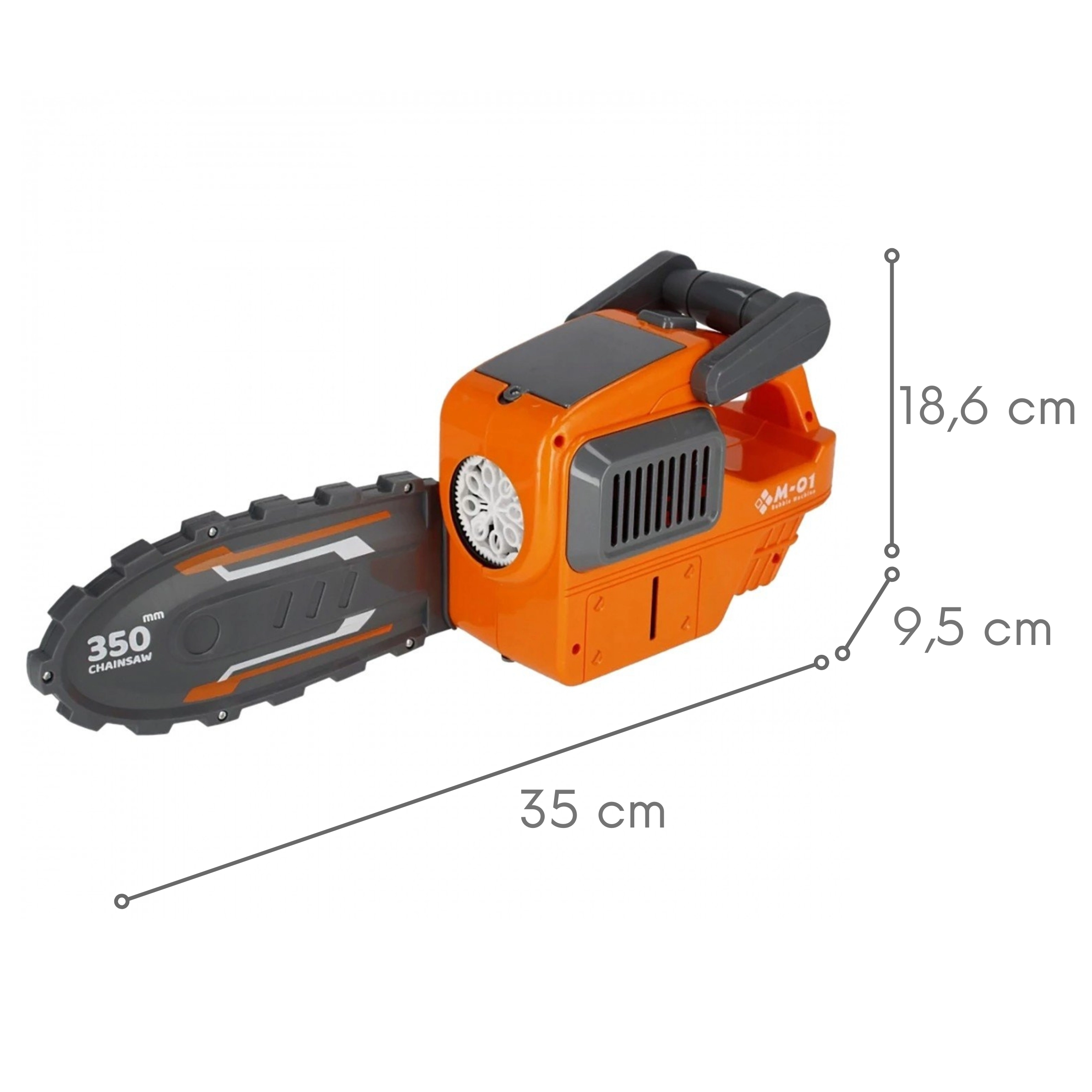 La divertida pistola de burbujas con forma de sierra de la marca WOOPIE convierte cada tarde en el jardín en un espectáculo lleno de burbujas. Gracias a la “hoja” desmontable, cambias rápidamente el aspecto a un elegante generador de burbujas, mientras que el soplado automático, los efectos de luz y la salida giratoria de 360° crean un impresionante espectáculo visual. El paquete incluye 2 botellas de solución; el juguete es ligero y portátil e ideal para niños a partir de 3 años.