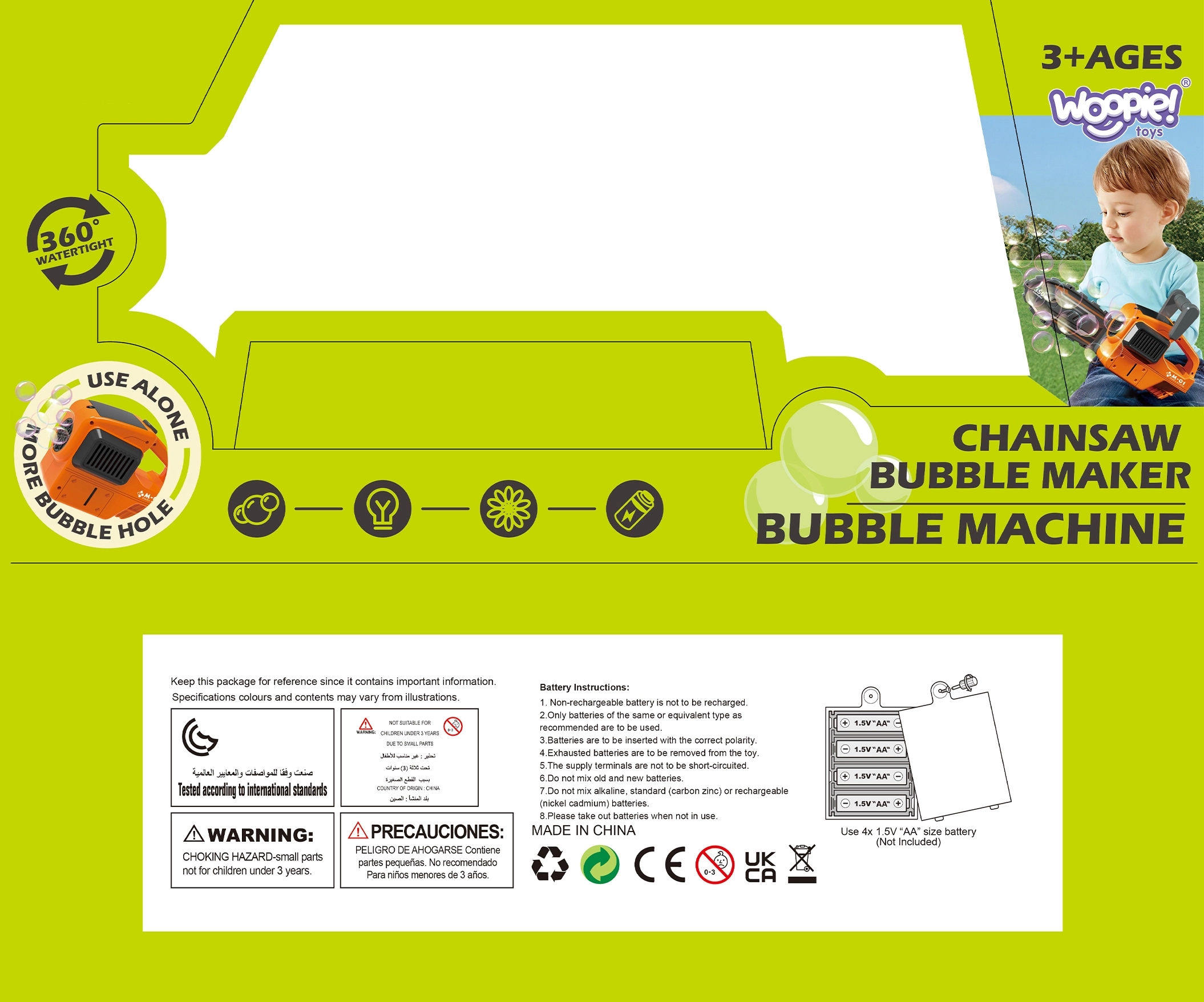 La sierra de burbujas WOOPIE es un juguete original que combina el aspecto realista de una sierra con la magia de miles de burbujas arcoíris. El accesorio desmontable “hoja” te permite cambiar en segundos del estilo de sierra a un generador compacto de burbujas: ideal para el jardín, cumpleaños y pícnics familiares.