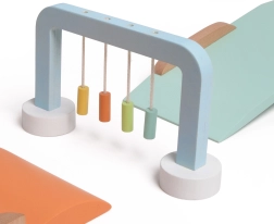 Este set de minigolf de madera de alta calidad está fabricado con madera no tóxica y resistente. Gracias a su fácil montaje, puedes jugar en cualquier lugar: en el salón, el dormitorio infantil o el jardín. Los obstáculos coloridos y las reglas sencillas entusiasman tanto a principiantes como a pequeños deportistas.