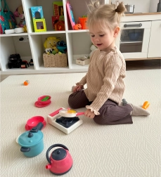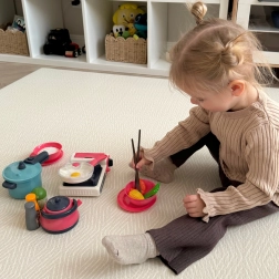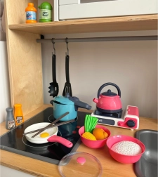 Con el set de cocina de Woopie, los niños pueden sumergirse en un mundo de aventuras culinarias. El juguete está destinado a niños a partir de 3 años e incluye varios accesorios de cocina como platos, cuenco, tetera y sartén con tapa, lo que garantiza horas de diversión. Los niños pueden inventar sus propias recetas y crear platos imaginarios, lo que apoya de forma excelente el desarrollo de su fantasía y la cooperación durante el juego con otros niños.