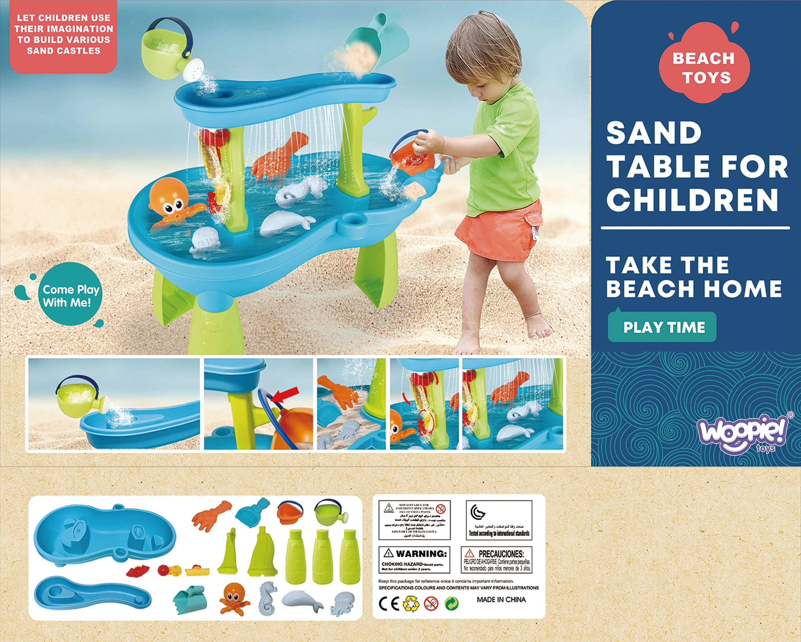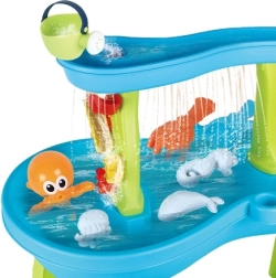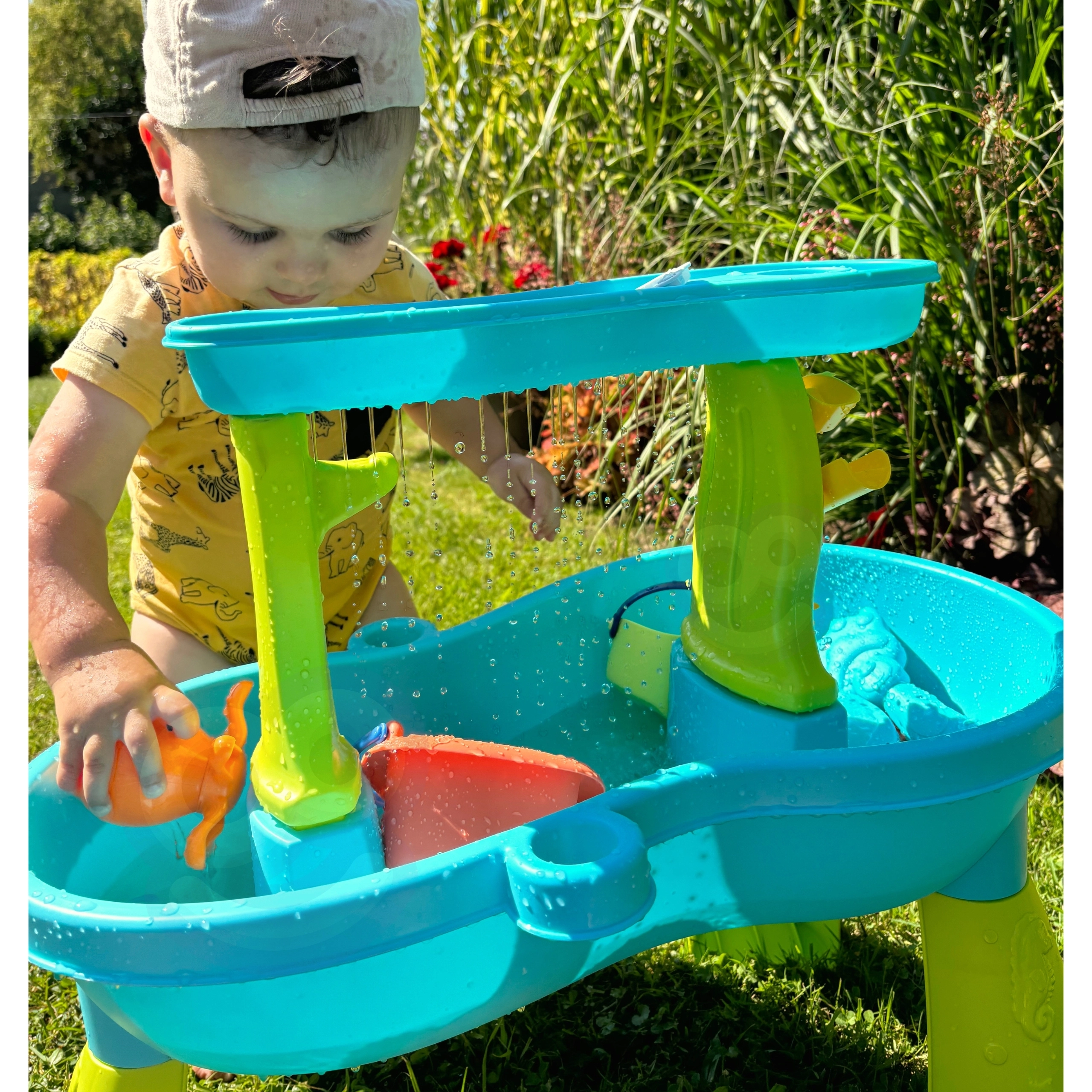 La mesa de agua Pulpo de la marca WOOPIE ofrece una experiencia única con agua y arena para niños. Gracias a 18 accesorios como 3 moldes, un pulpo, una regadera, una cesta, un recogedor de arena y 2 palas, los niños disfrutarán de infinitas posibilidades de juego. El agua vertida en la parte superior de la mesa puede escurrirse por los orificios en el fondo o hacer girar los molinos de agua. ¡Ideal para jugar tanto en casa como al aire libre!