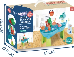 La mesa de agua 2 en 1 con arenero de la marca WOOPIE es una excelente opción para niños a partir de tres años a los que les gusta pasar tiempo cerca del agua. Gracias a su diseño innovador, la mesa se puede utilizar como mesa de agua y como arenero. El juguete es ideal para divertirse al aire libre y en interiores, ofrece un montaje sencillo y un montón de accesorios.