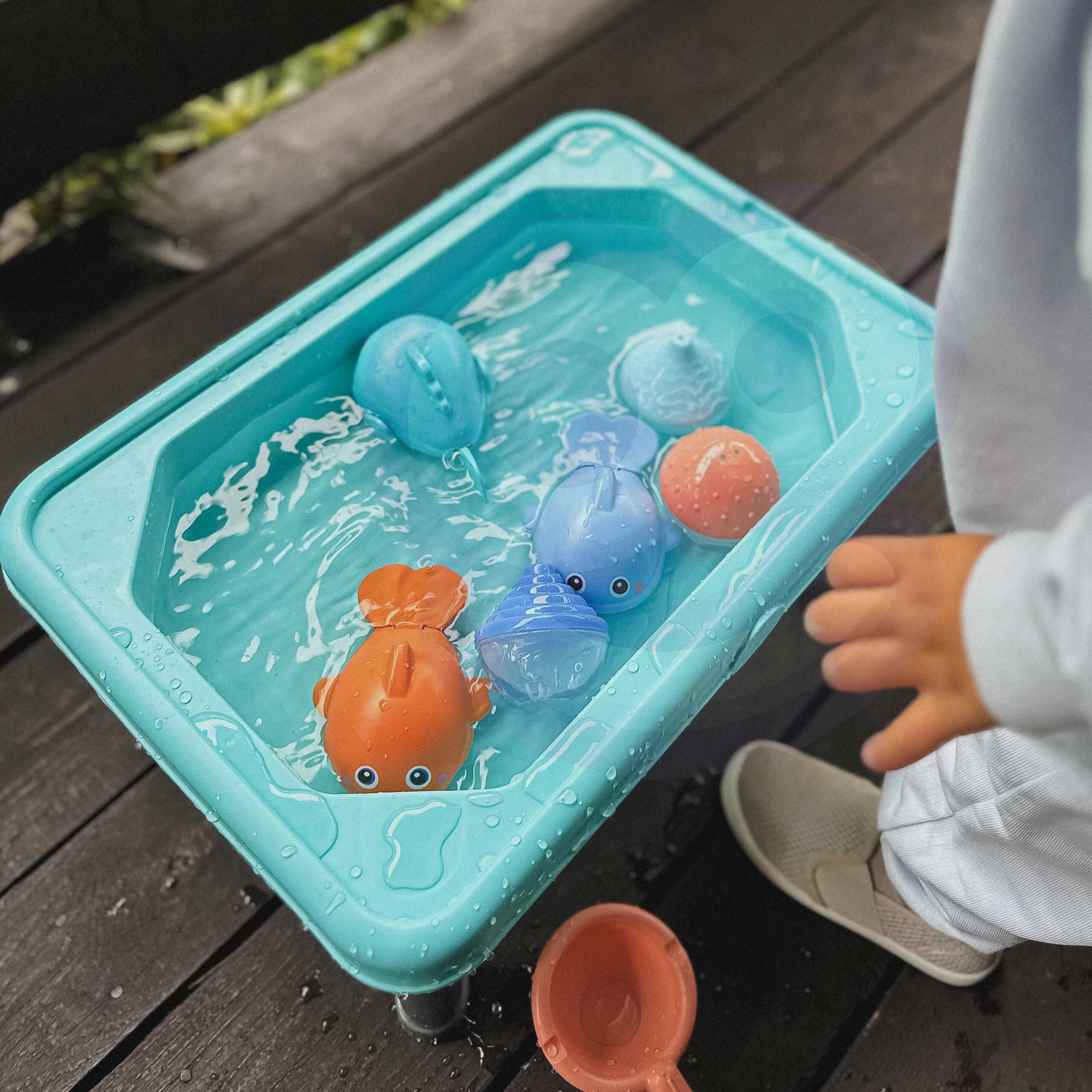 Esta mesa combina juegos de agua, arenero y pesca en un solo juguete versátil. Tu hijo puede cambiar fácilmente entre actividades según sus preferencias.