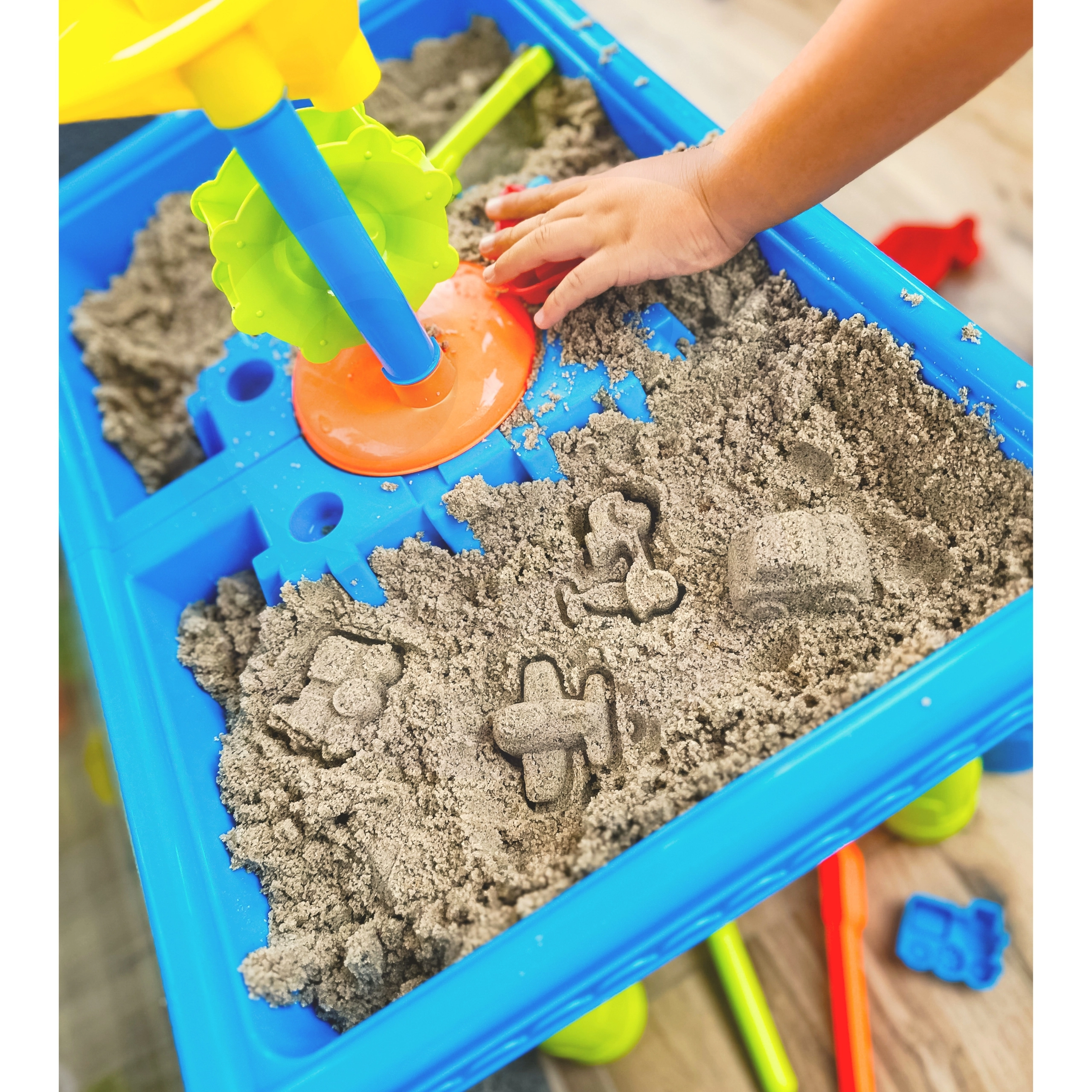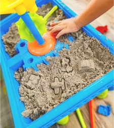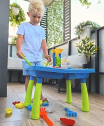 Gracias a sus dos compartimentos, la mesa permite jugar con agua y arena al mismo tiempo, ofreciendo múltiples posibilidades de diversión.