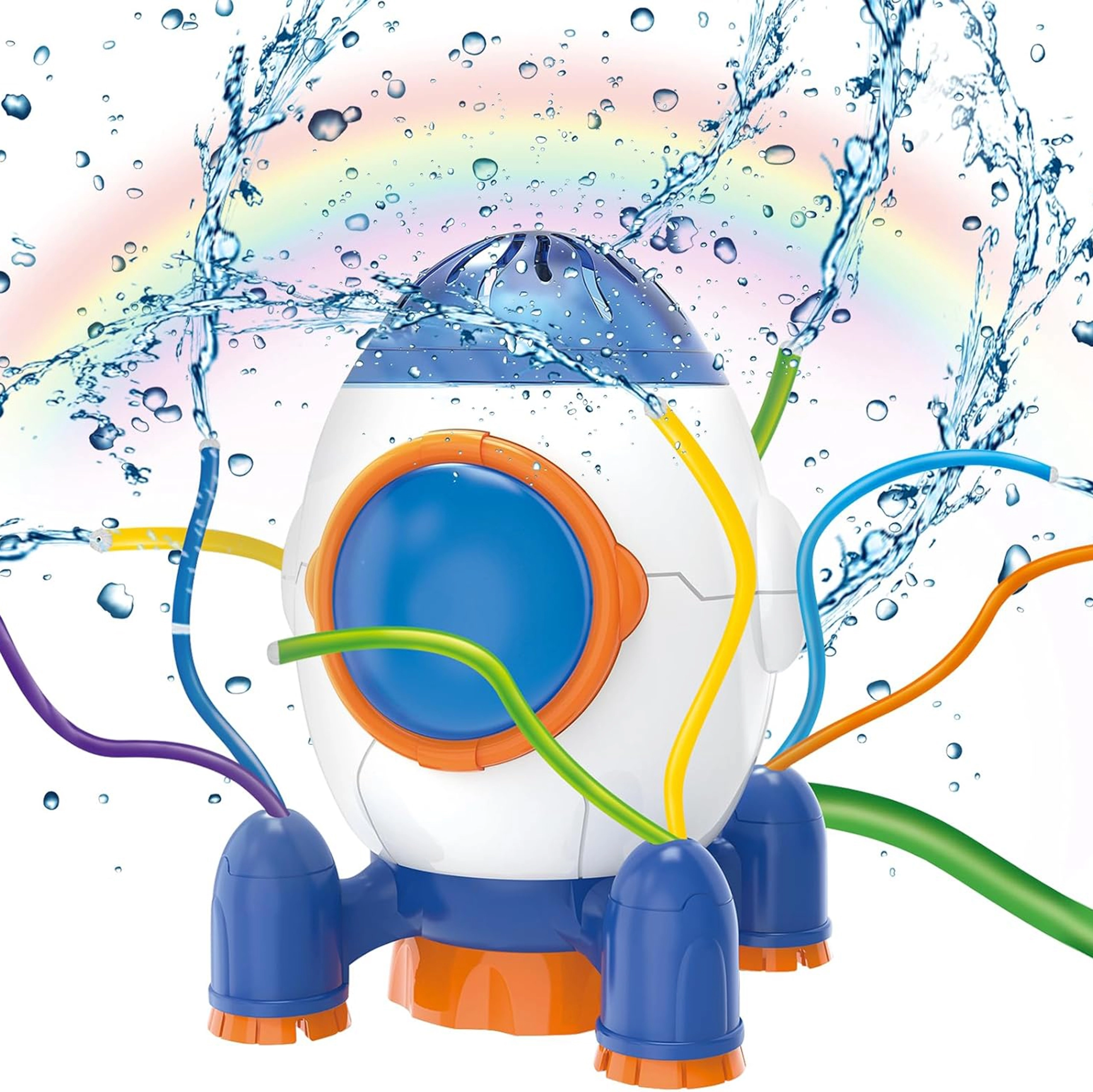 La combinación de fuente infantil y aspersor práctico ahorra tiempo y espacio en el jardín. Los niños se divierten mientras el césped recibe hidratación.