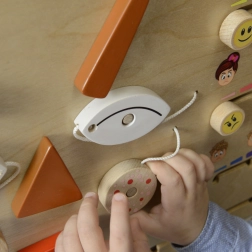 El tablero se utiliza fácilmente en un marco en la pared o de forma independiente sobre la mesa o el suelo. Es robusto, seguro e ideal para el enfoque Montessori de aprendizaje a través de la actividad sensorial y práctica.